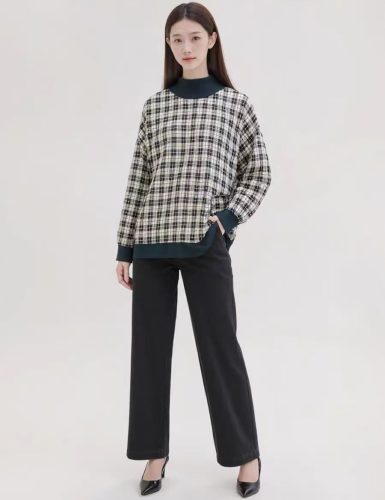 Plaid Mock Neck Sweatshirt with Contrast Trim