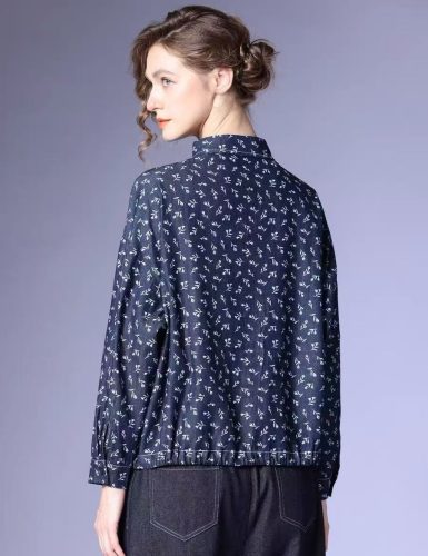 Made from soft, breathable denim fabric, this shirt showcases delicate white floral prints that add a feminine touch to the rugged denim texture. It features a classic button-down front, a tailored collar, and a unique drawstring hem that lets you customize the fit—whether you prefer a relaxed, flowy silhouette or a slightly cinched look. The oversized cut ensures all-day comfort, making it a go-to piece for effortless styling.