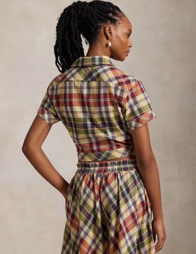 This Multicolored Plaid Tie-Front Cropped Shirt is a vibrant fusion of retro charm and contemporary style. Crafted from lightweight, breathable fabric, it features a classic collared design, short sleeves, and a unique tie-front detail that allows for a customizable, cropped fit. The bold multicolored plaid pattern adds a playful yet polished touch, making it an ideal choice for those who want to infuse their wardrobe with a dose of vintage-inspired flair.