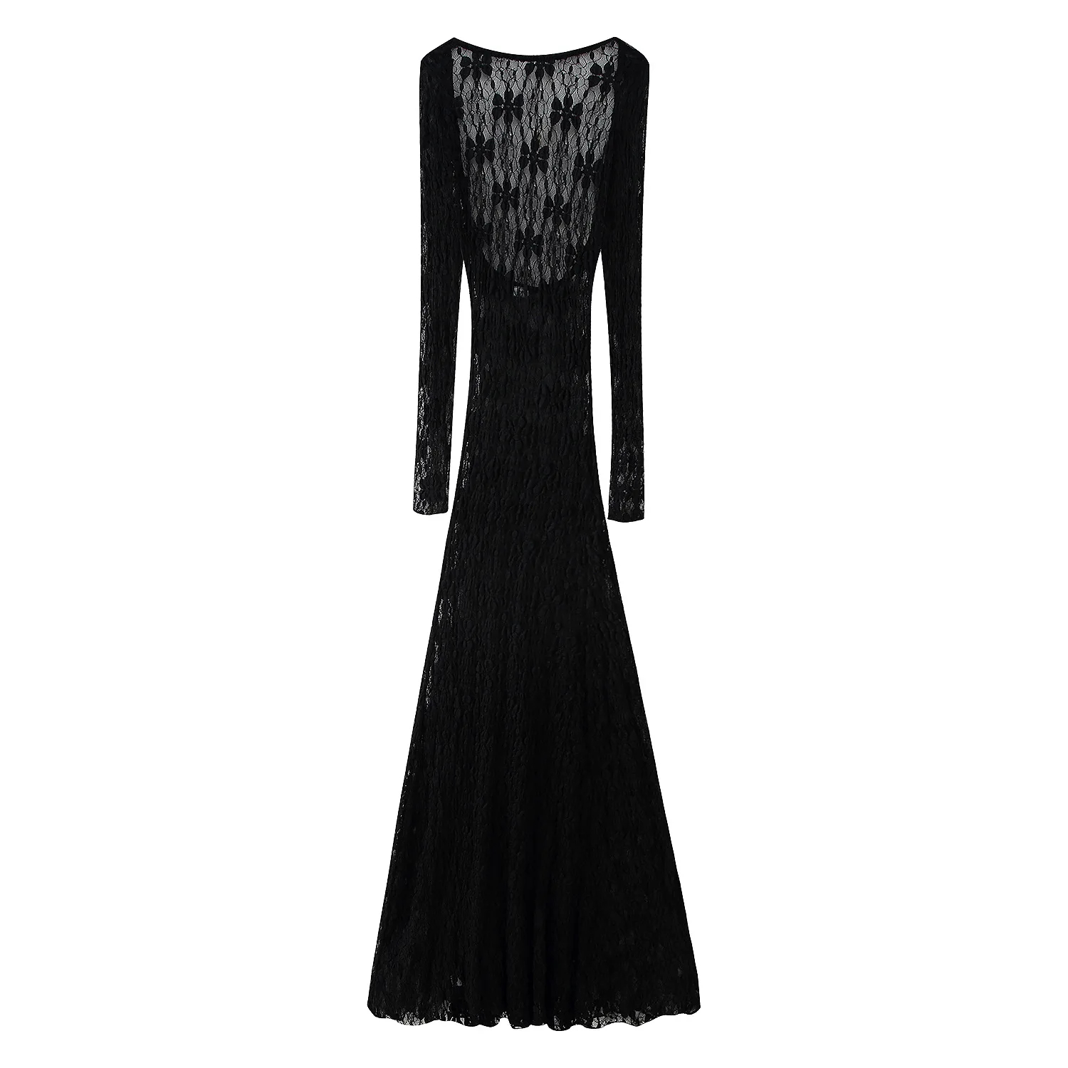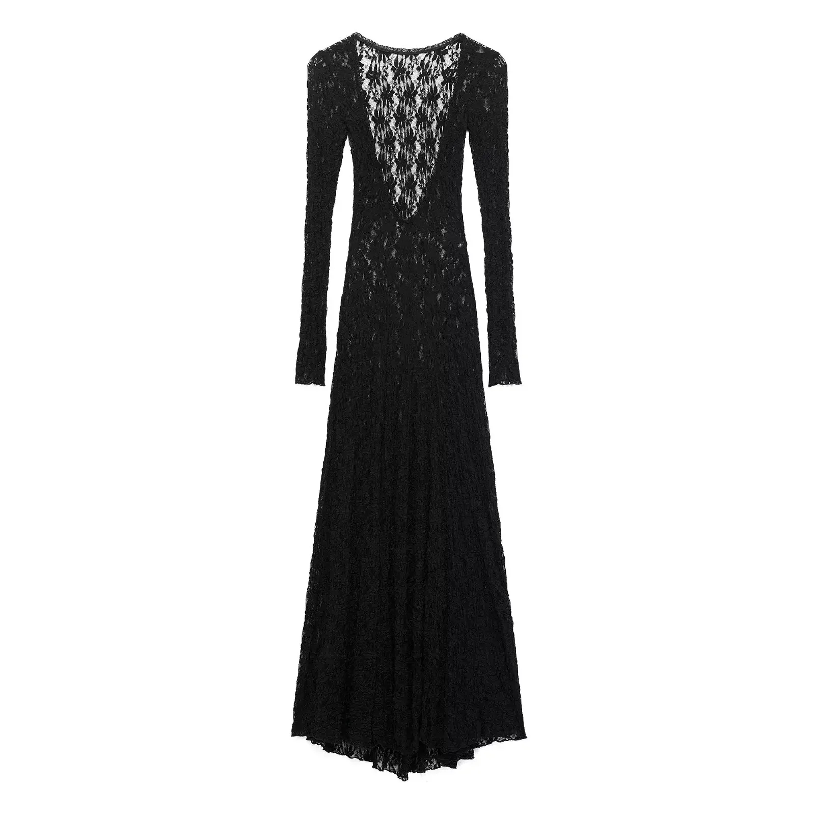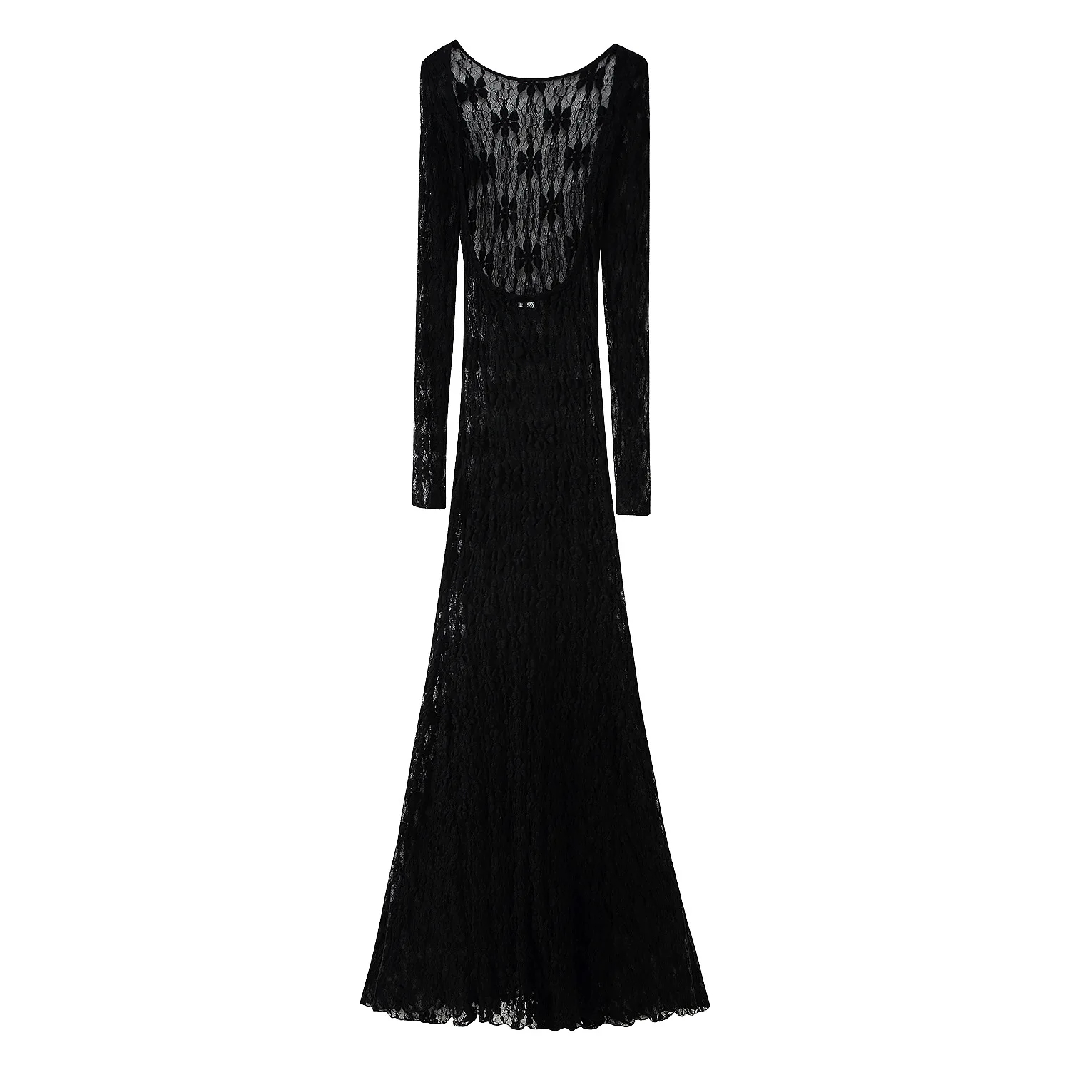 2025 New Lady Chic Evening Gowns Elegant Lace Spliced Long Sleeve Long Dress Women Sexy Backless See Through Party Dresses