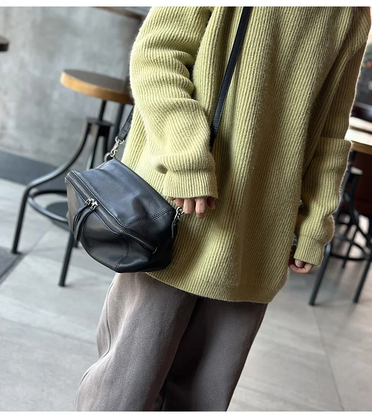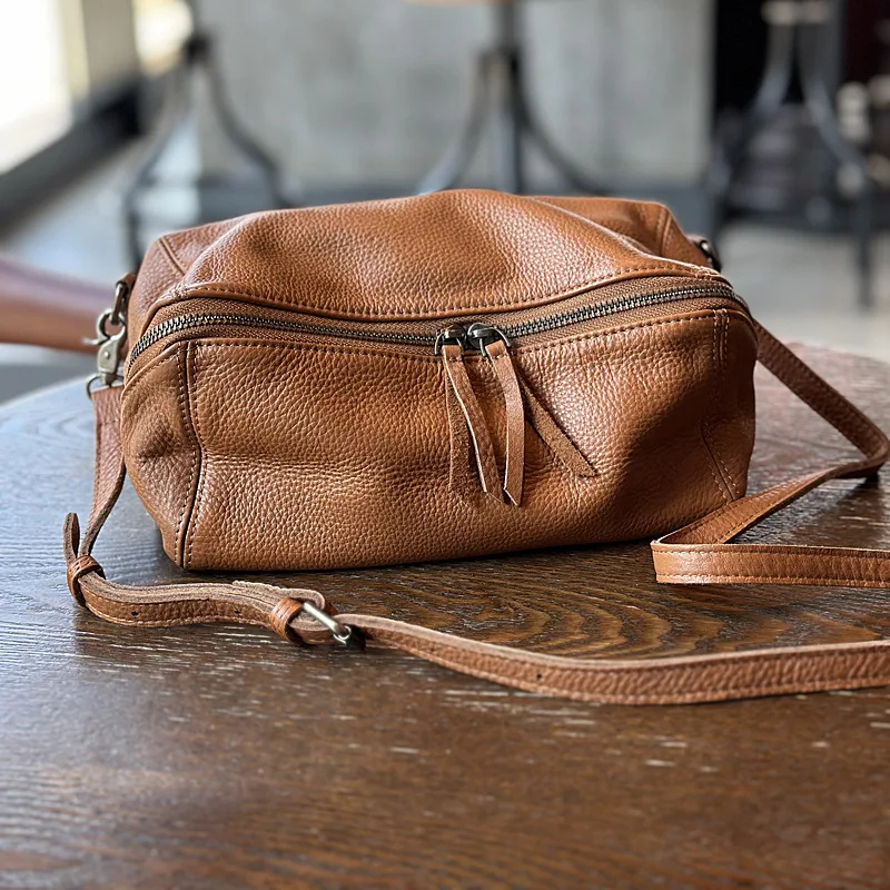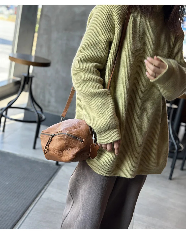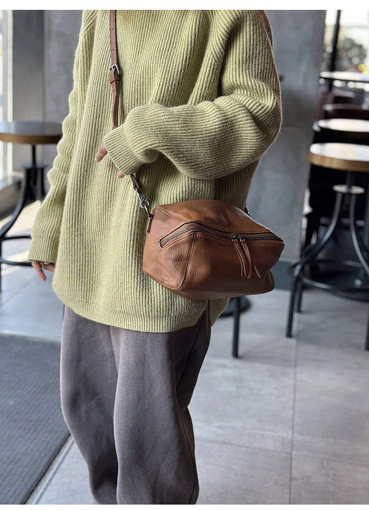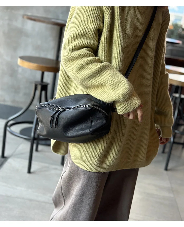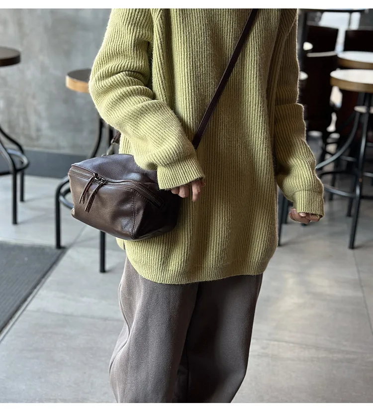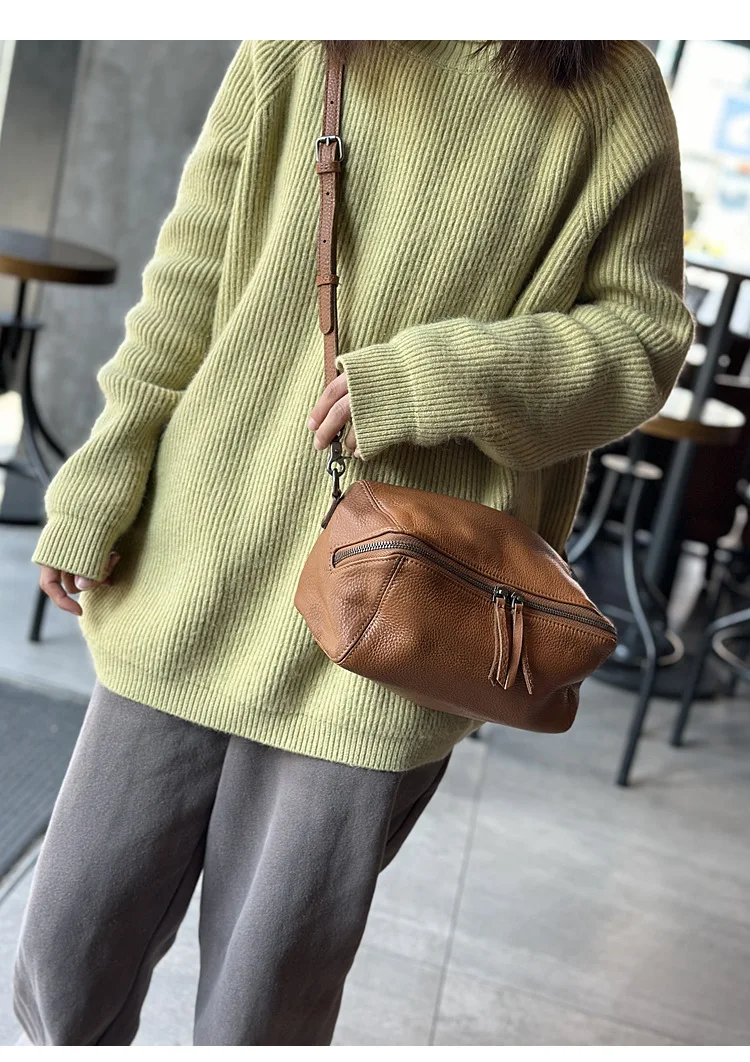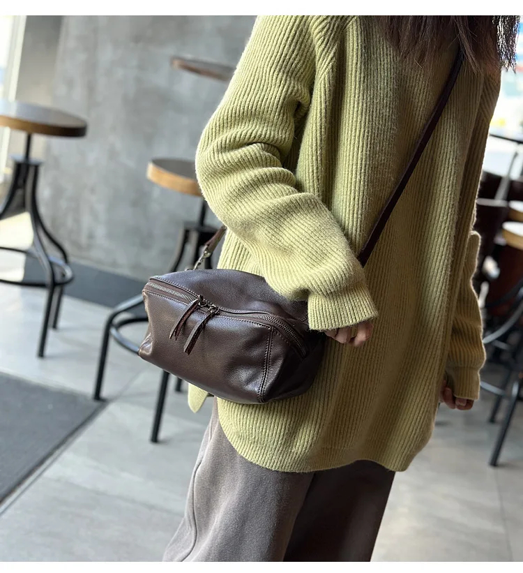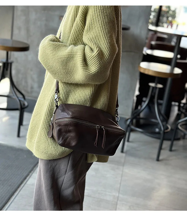 2025 New Leisure Genuine Leather Lightweight Women Shoulder Crossbody Bag Retro Soft Cowhide Versatile Bag