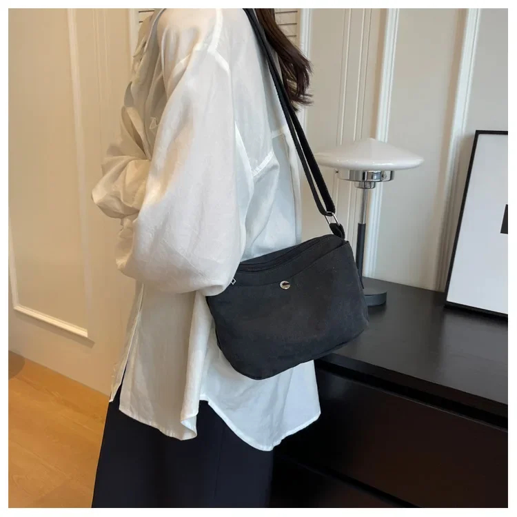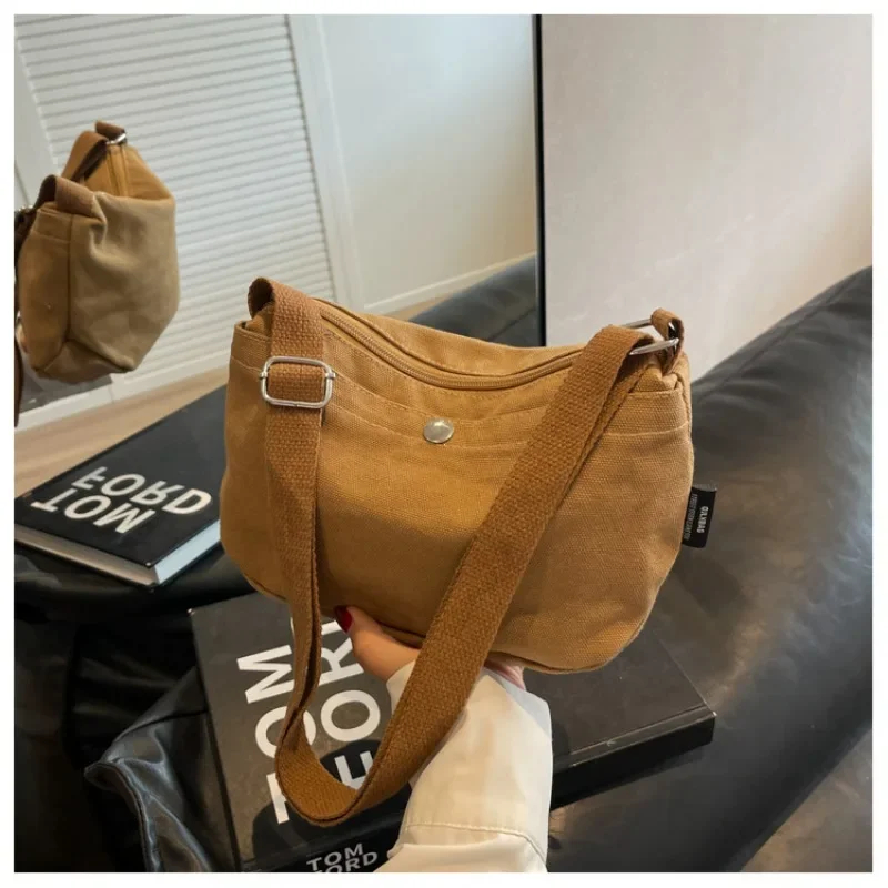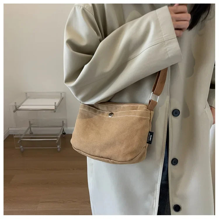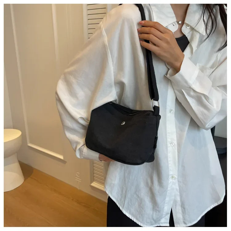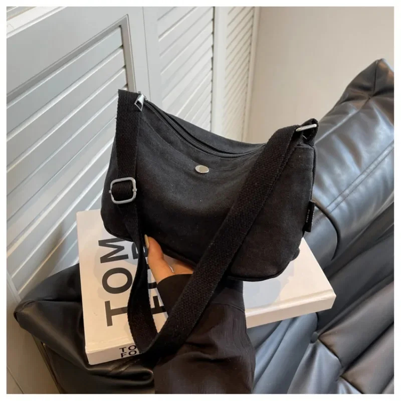 2025 Small Canvas Women's Black Shoulder Cross Bag Female Messenger Bag Y2K Eco Korean Shopper Student Handbags Side Bag Book