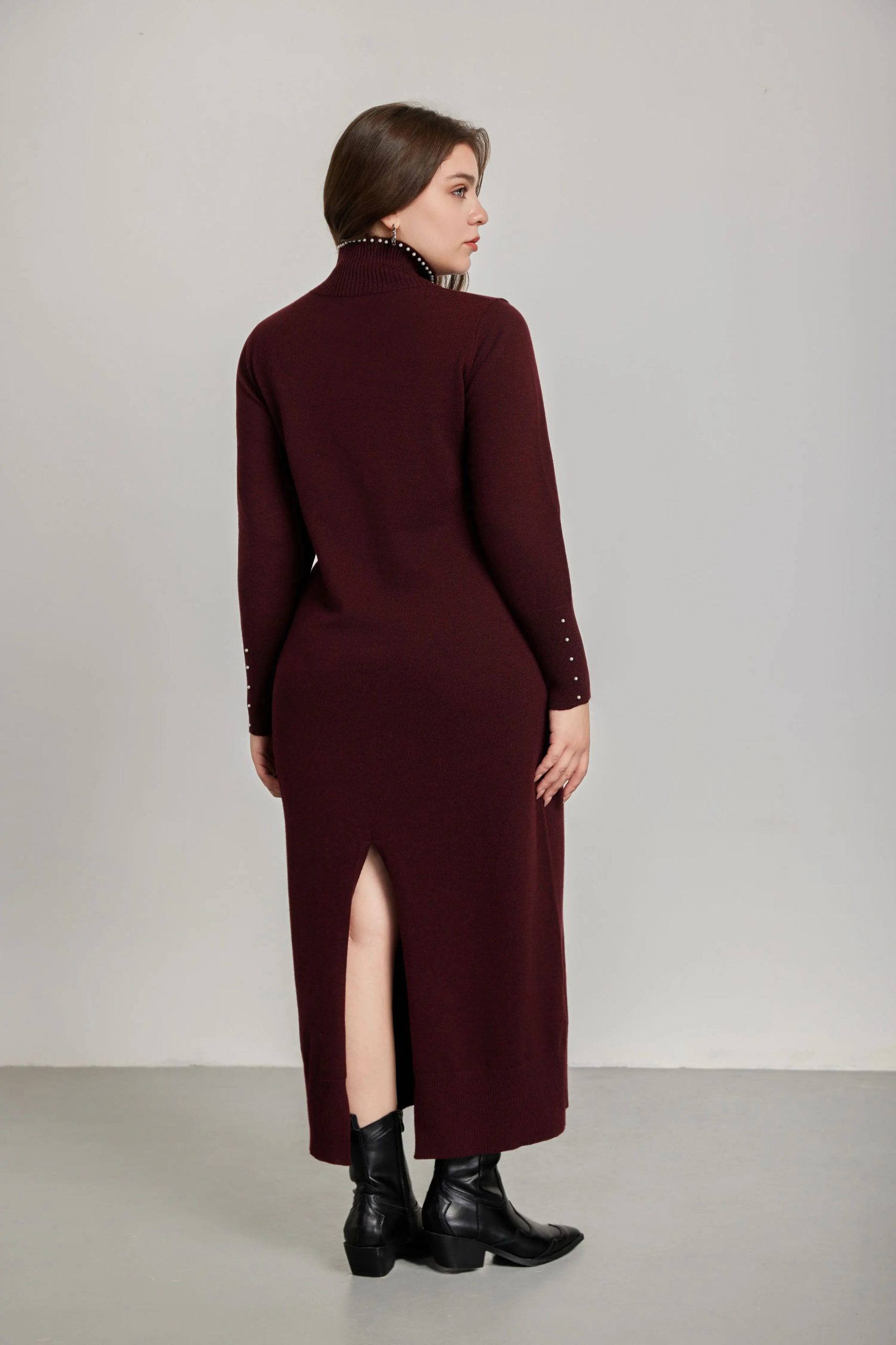 Crafted from premium soft knit material, this dress offers exceptional warmth and stretch, ensuring a comfortable, relaxed fit that feels gentle against the skin. It retains a sleek drape through wear, balancing coziness with polished style—perfect for cooler seasons.