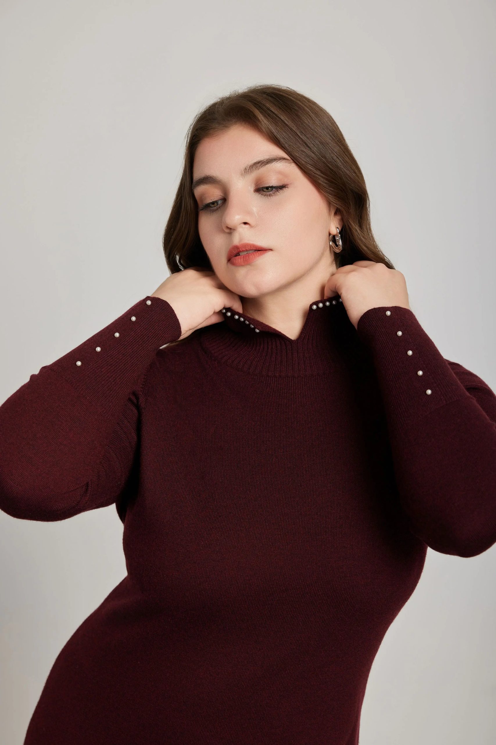 Featuring a mock neck with delicate embellishments, this dress adds a refined, trendy touch to your look. The high neckline provides extra warmth, while the subtle decorative trim elevates the silhouette with understated elegance.