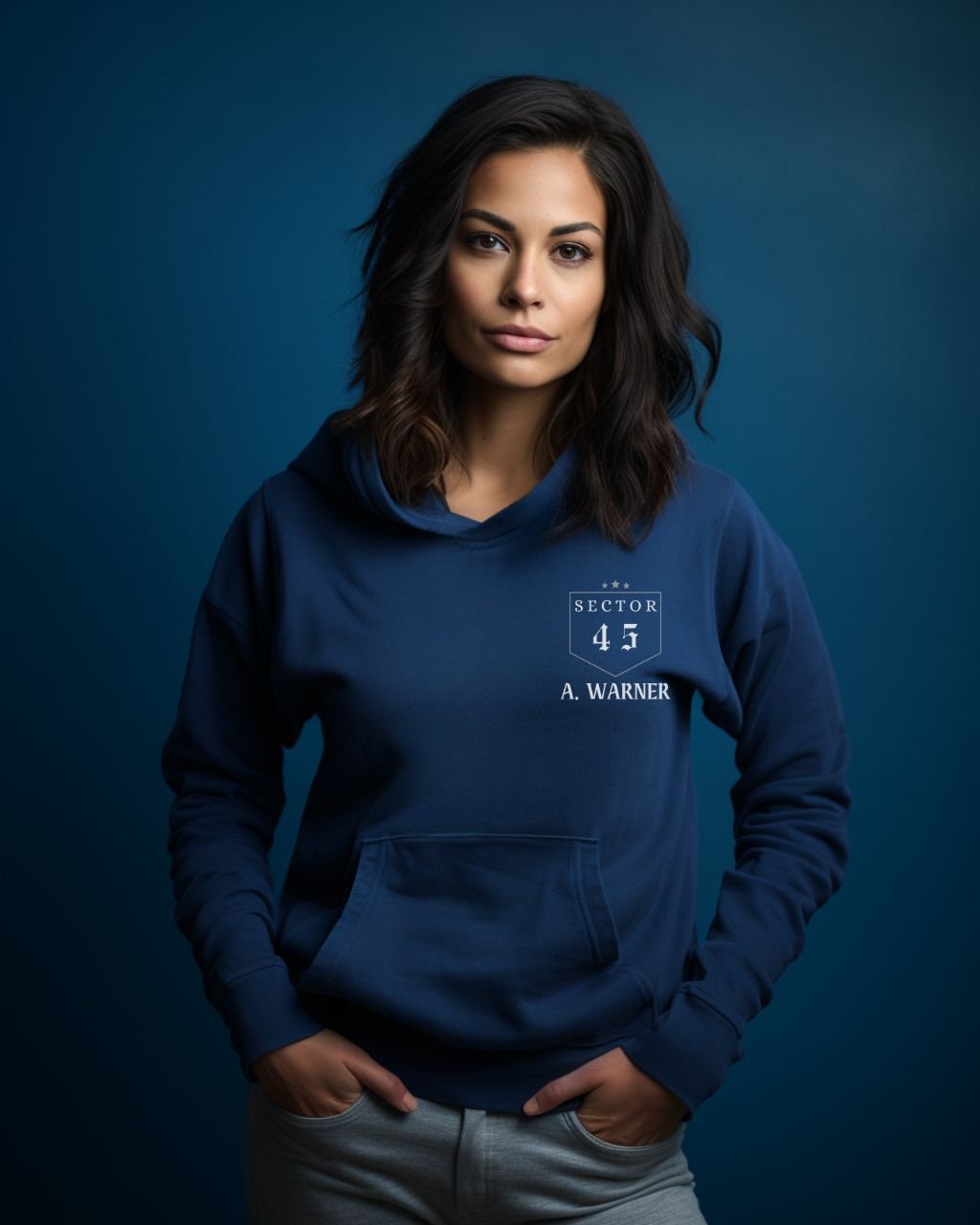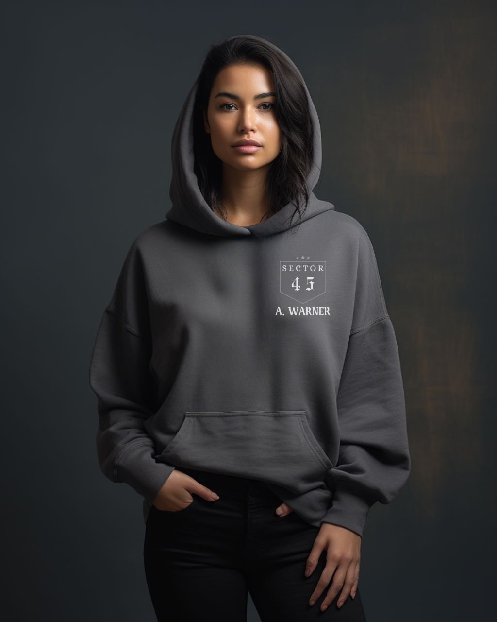 Elevate your outfit with a chic chest emblem adding a trendy branded touch and a spacious kangaroo pocket—blending style and utility to store small essentials like phones or keys while enhancing the hoodie’s casual-chic design.