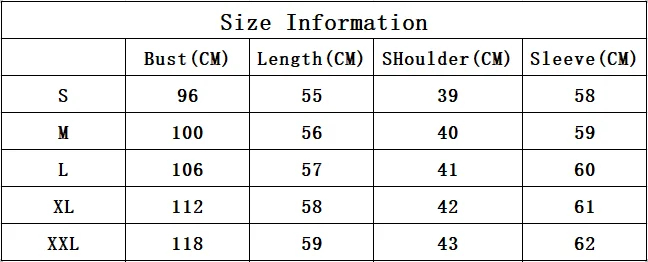 | Size | XXL, XL, M, S, L |