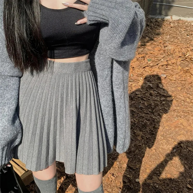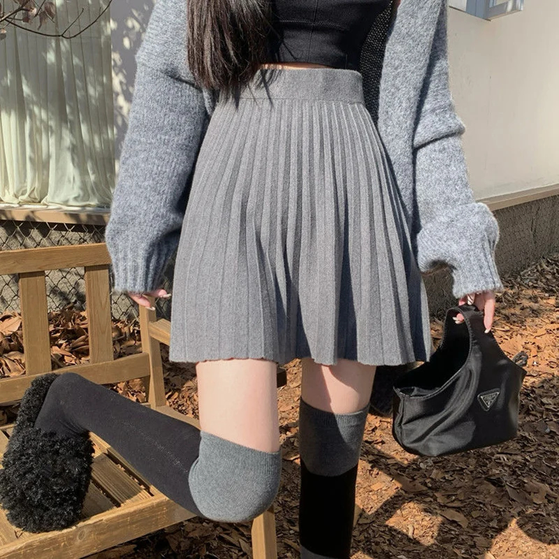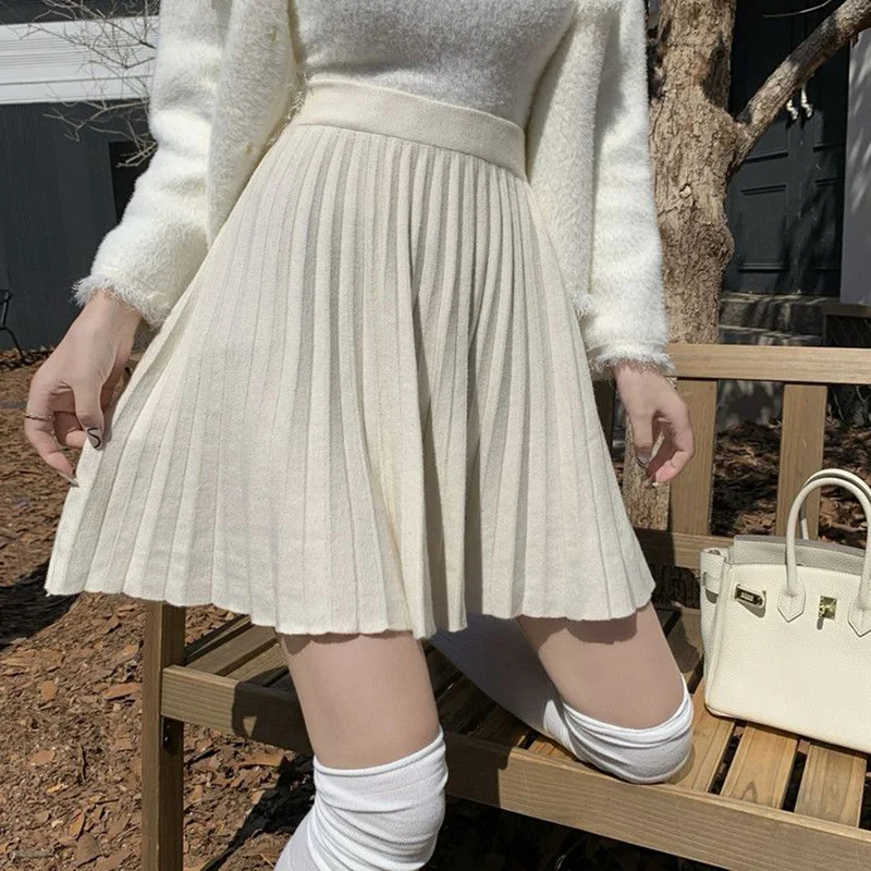 Autumn Winter Knitted Pleated Skirt Women 2024 Korean High Waist Mini Skirts Woman Preppy Style A Line Short Skirts Mujer