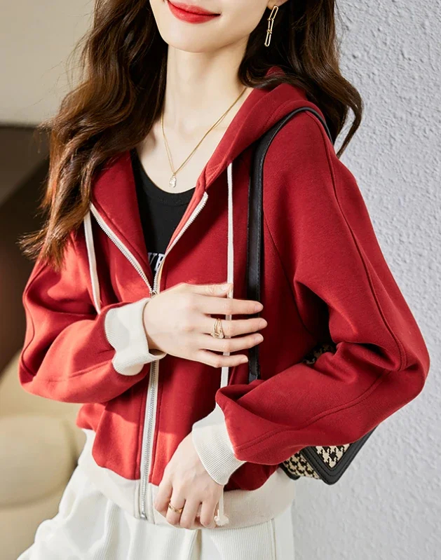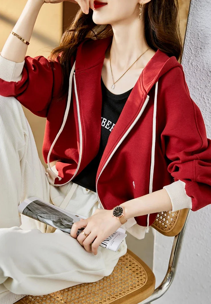 Crafted from premium fabric, this full-zip hooded jacket offers exceptional softness and comfort, ensuring a cozy wearing experience in spring, autumn, and winter without compromising style. It’s a perfect blend of comfort and fashion for your daily wardrobe.