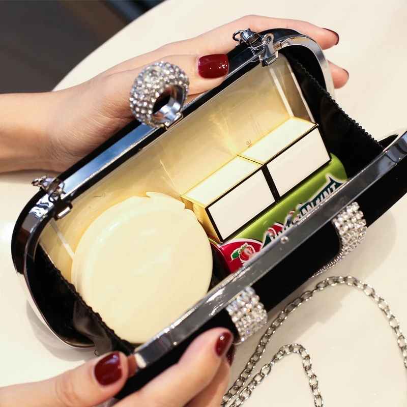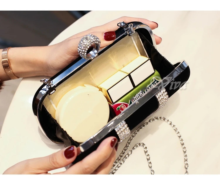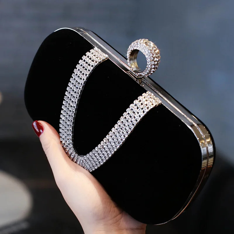 Black Velvet Diamond Decoration Portable Dinner Bag Wedding Party Handbags Purse Banquet Clutch Bag Cheongsam Chains Hasp