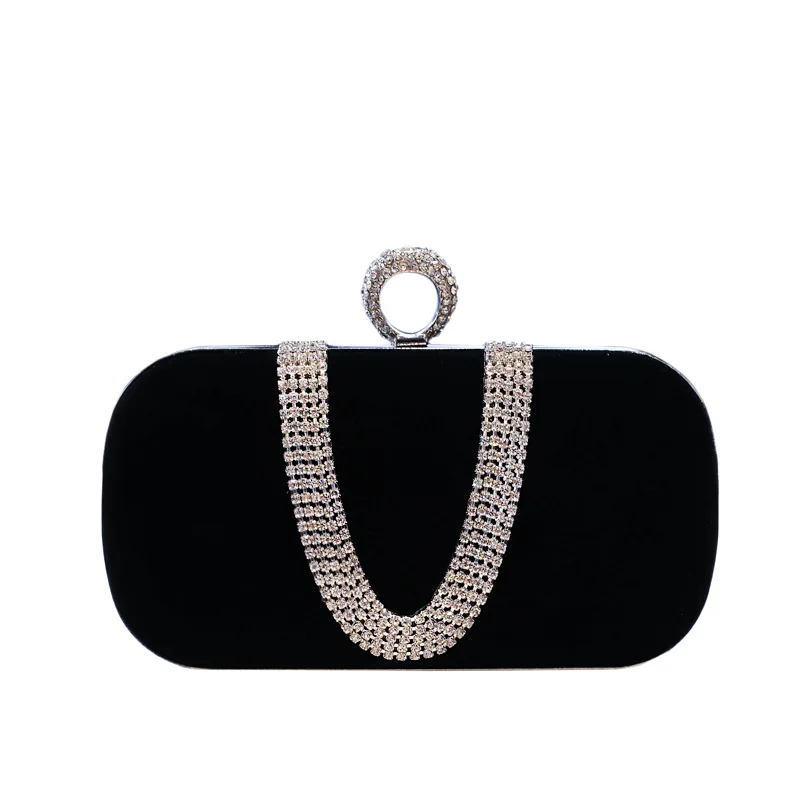 Description:This women’s velvet clutch is a stunning addition to your accessory collection. Made from premium soft velvet, it balances luxurious style with practical functionality. The crystal-embellished detail and ring handle add a glamorous, on-trend touch, while the compact interior stores evening essentials without sacrificing a sleek shape. Suitable for formal events, parties, or special outings, this clutch elevates any dressy look—stay stylish and organized with this eye-catching, elegant piece.