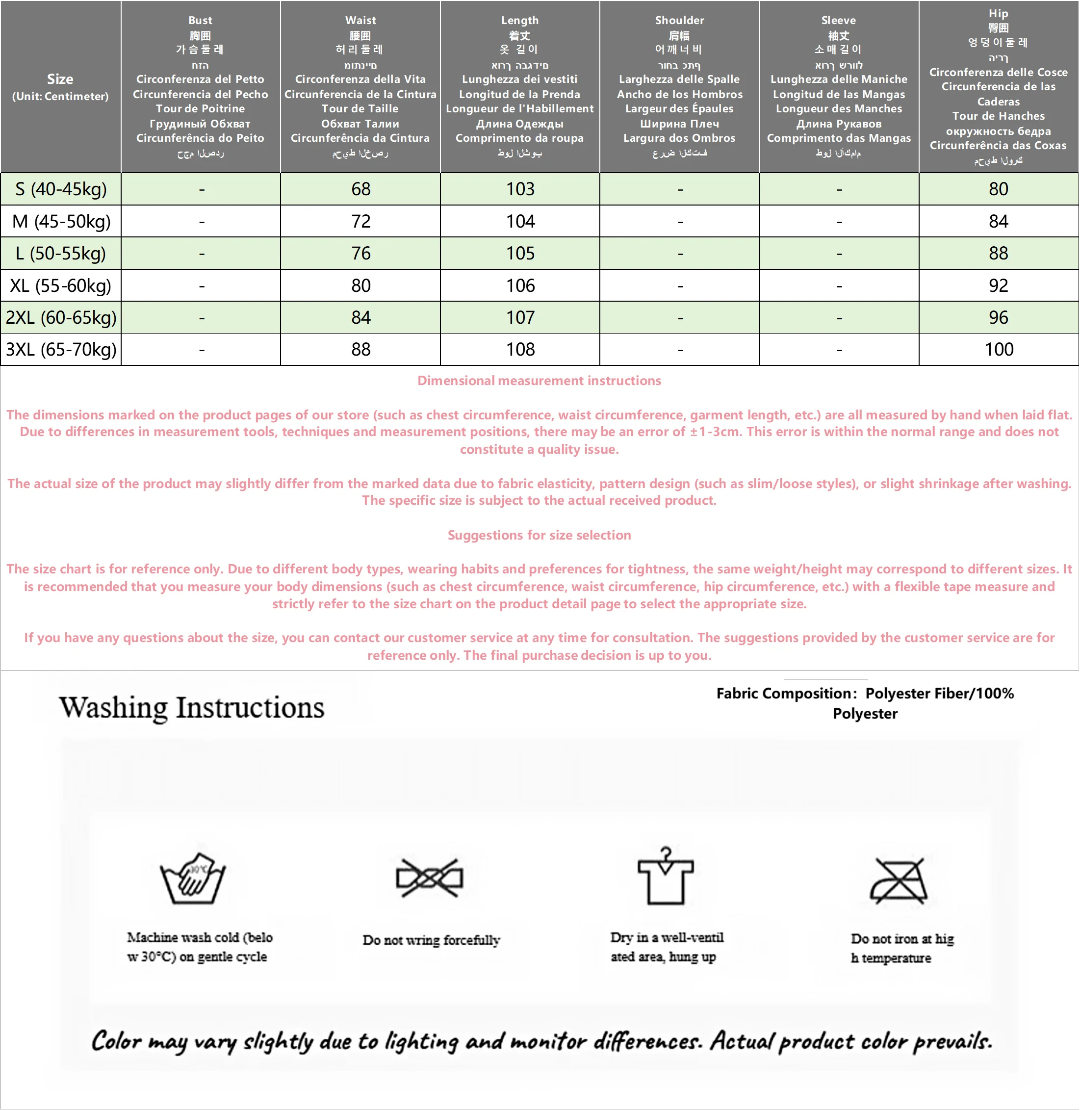 | Size | XL, XXL, M, L, S |