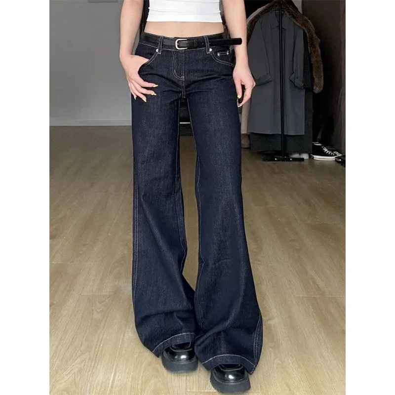 Blue Jeans Women's Hip-hop Fashion Vintage Streetwear Y2K Wide Leg Straight Jean High Waist Trouser Classic Baggy Denim Pants