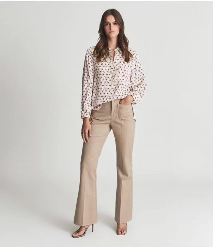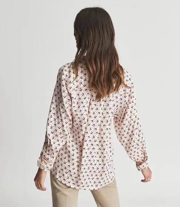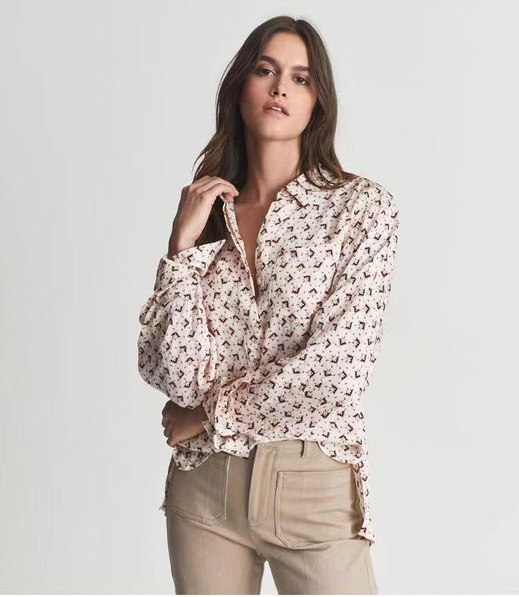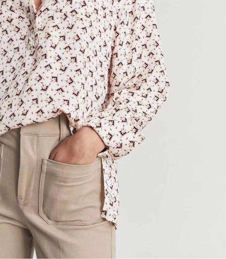 Its versatility shines in various styling scenarios. Pair it with tailored beige pants for a polished office look, or tuck it into high-waisted jeans and pair with ankle boots for a casual-chic vibe. Whether you’re going to a brunch or a creative work event, this blouse’s intricate floral pattern and soft texture ensure you radiate effortless elegance, establishing it as a timeless essential in any fashion-forward collection.
