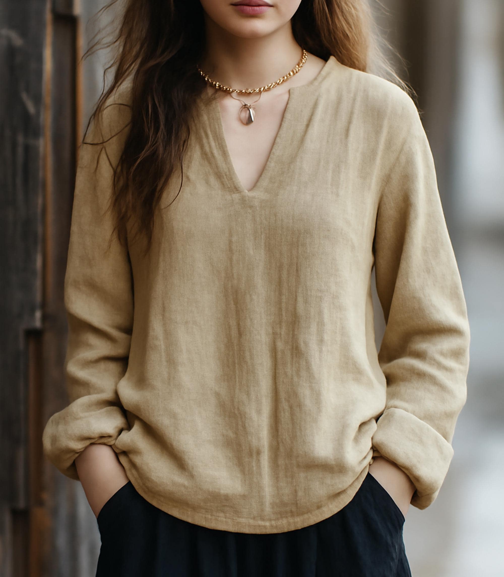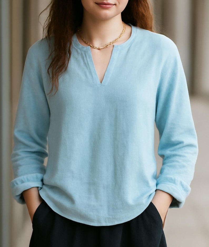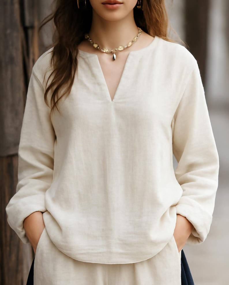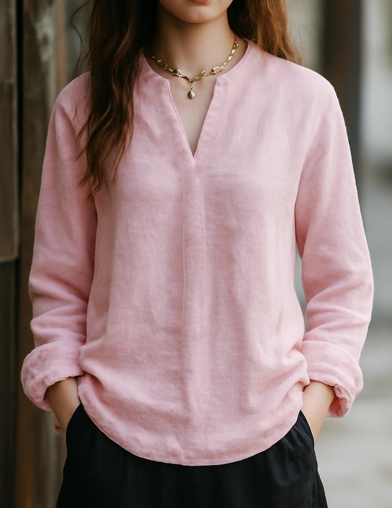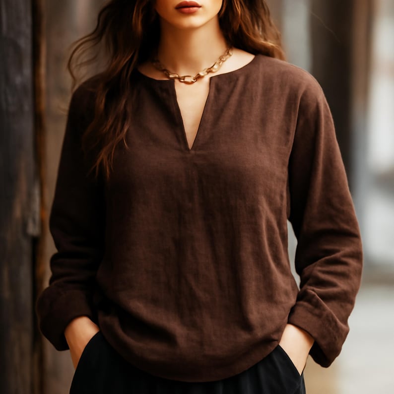 Crafted from premium linen-like material, this blouse delivers exceptional softness and breathability—keeping you cool and comfortable in mild to warm seasons spring, summer, or early autumn while maintaining a relaxed, rustic-chic style.