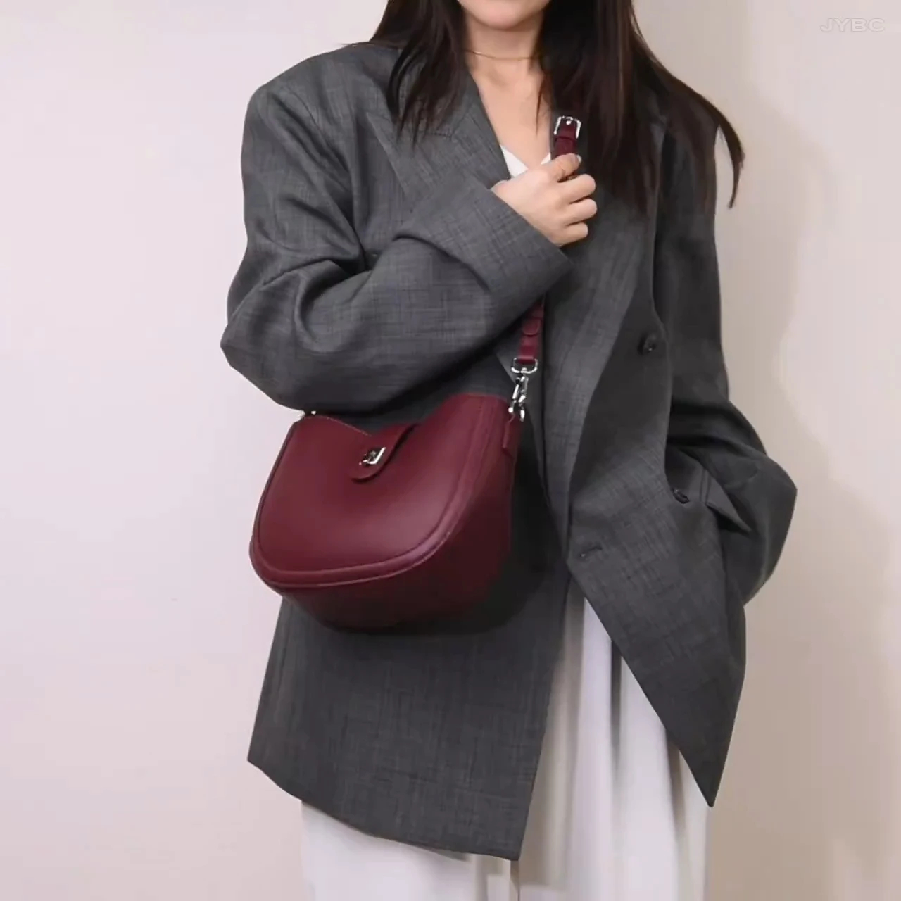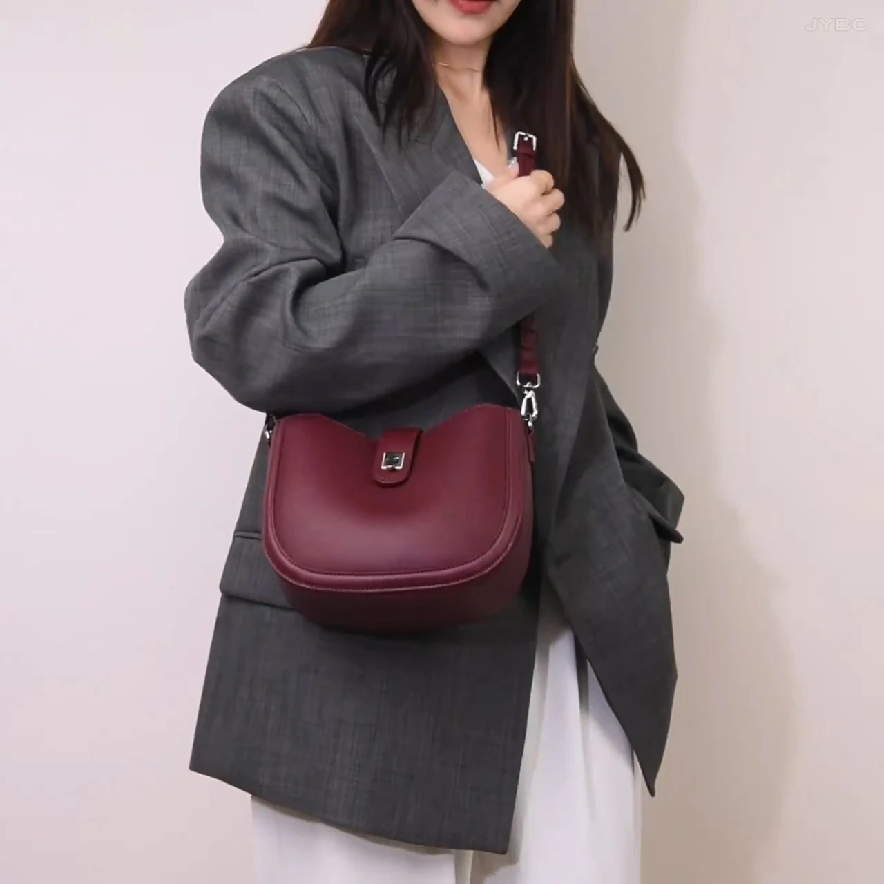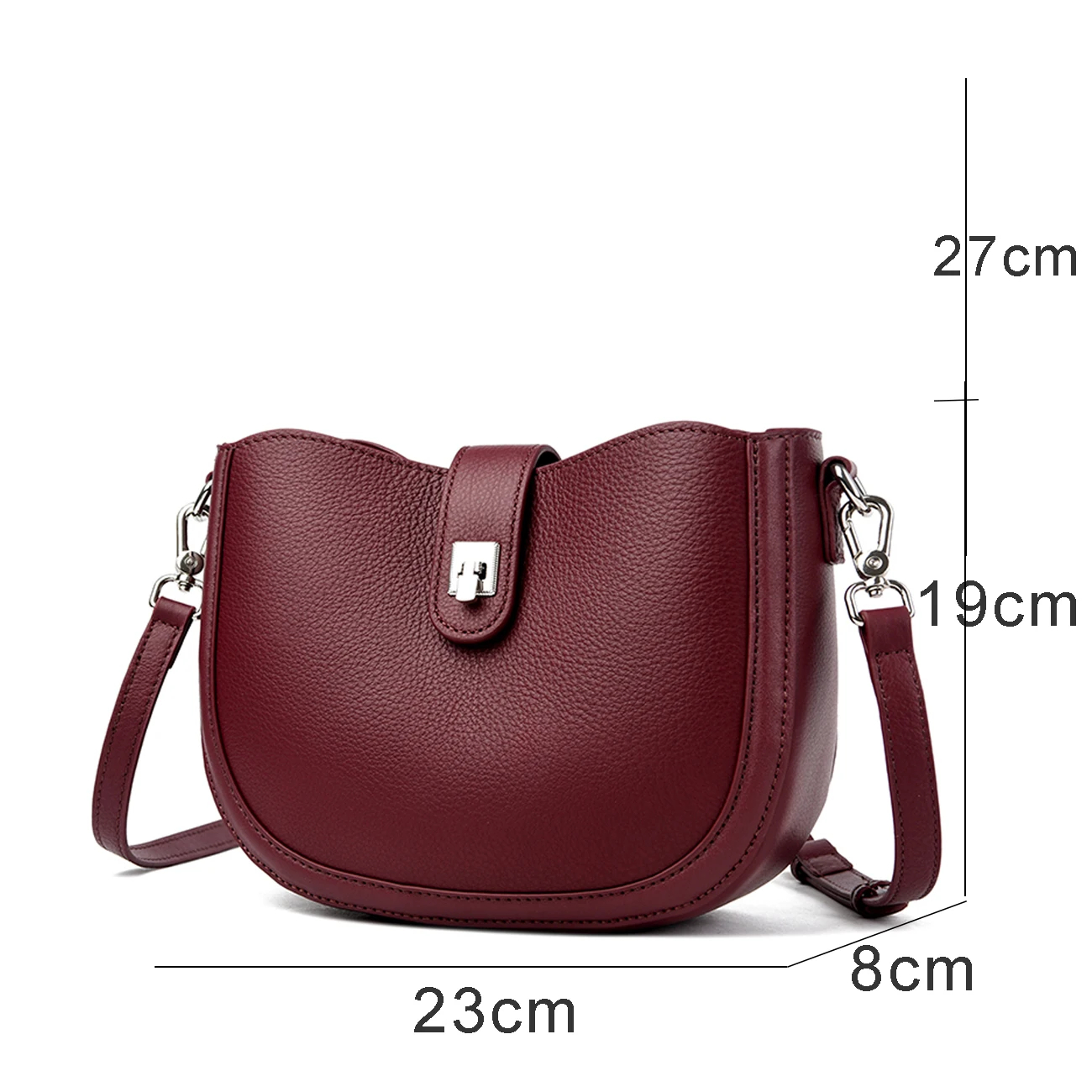 This women’s crossbody bag is a versatile addition to your accessory collection. Made from premium faux leather, it offers both modern style and practicality. The adjustable strap and buckle closure add a refined element, while the structured interior ensures organized storage. Designed as a crossbody bag, it can be styled to suit refined, casual, or office looks. Pair it with various outfits and accessorize to suit different occasions. Stay stylish and elegant with this trendy crescent-shaped crossbody bag.