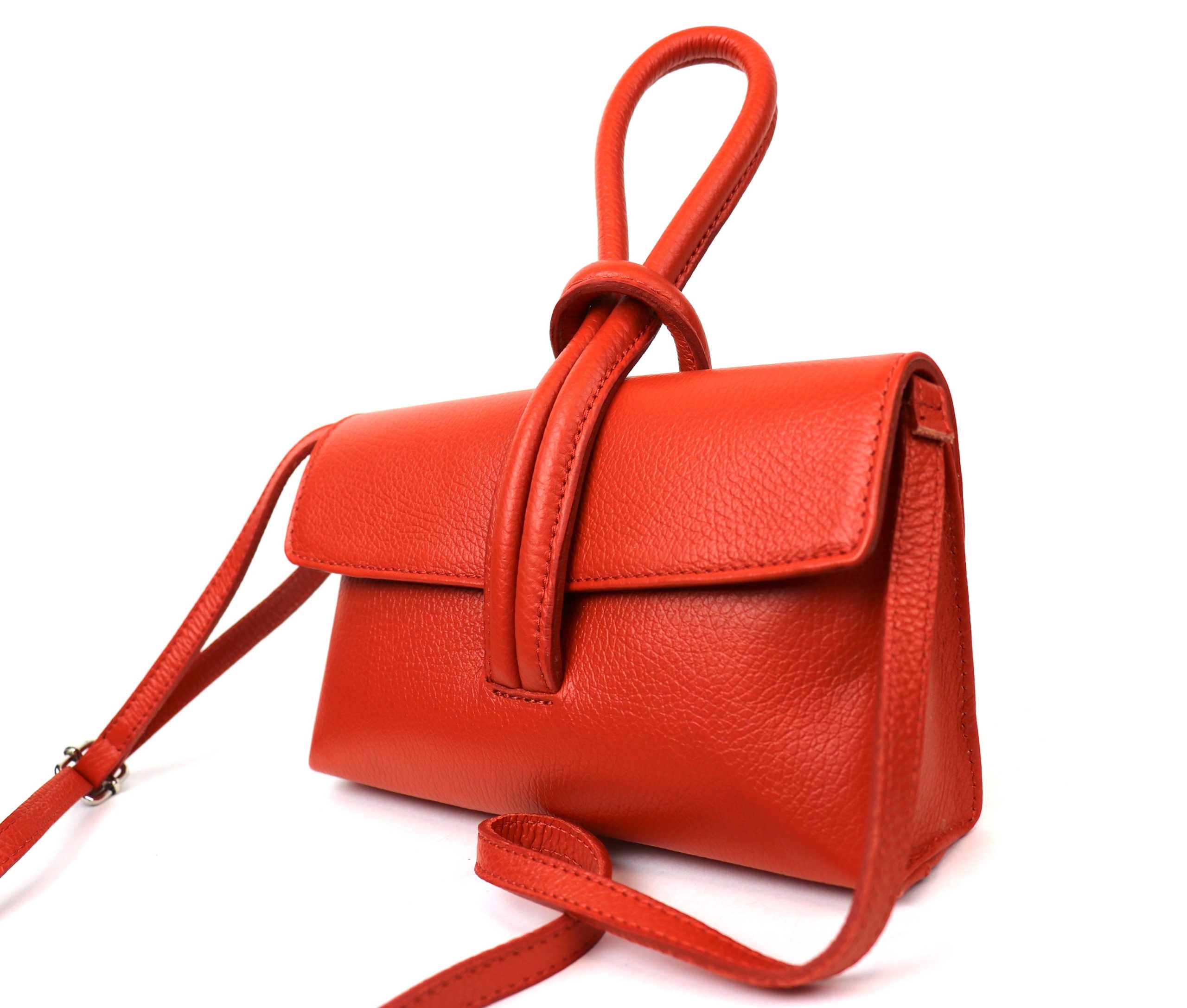 This vibrant leather bag is a playful, versatile staple for any accessory collection. Made from premium pebbled leather, it offers a soft texture and durable finish—ideal for daily use. The unique knotted handle adds trendy charm, while the adjustable crossbody strap boosts functional versatility. Its compact, organized interior holds essentials without feeling bulky, making it perfect for casual outings, brunch dates, or everyday errands. Pair it with your favorite ensembles to add a bold, stylish touch to your look—stay chic and organized with this eye-catching bag.