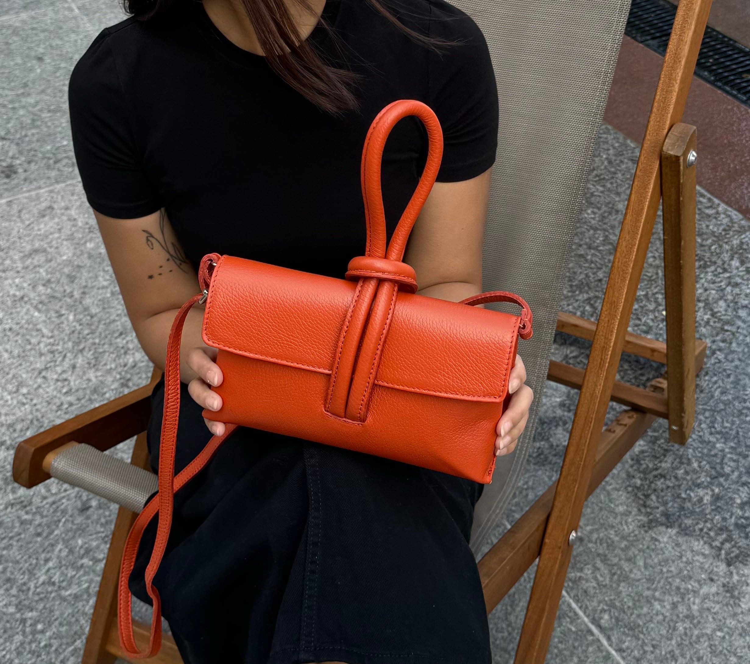 Burnt Orange Italian Leather Clutch: Handmade Top Handle Crossbody Bag