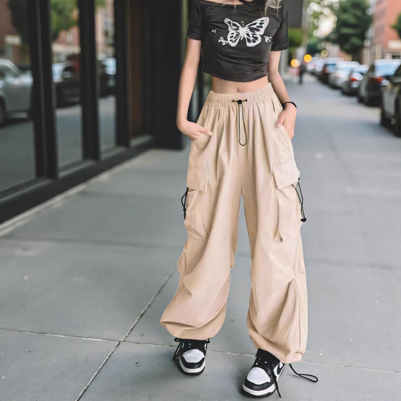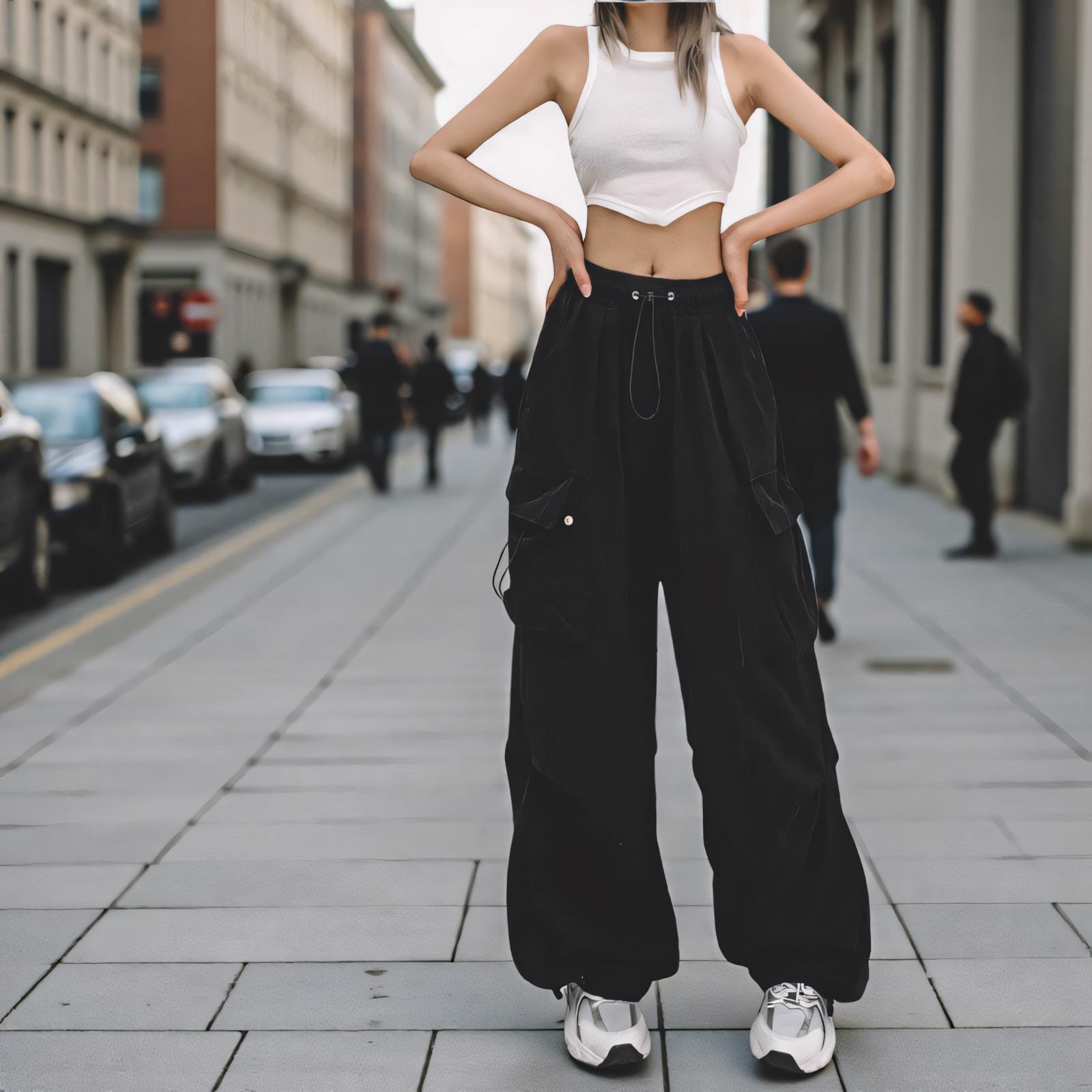 Featuring multiple oversized side cargo pockets, these pants merge style with utility. The pockets provide ample storage for essentials like phones, keys, or small items while adding a trendy, edgy flair to the design—enhancing both practicality and visual impact.