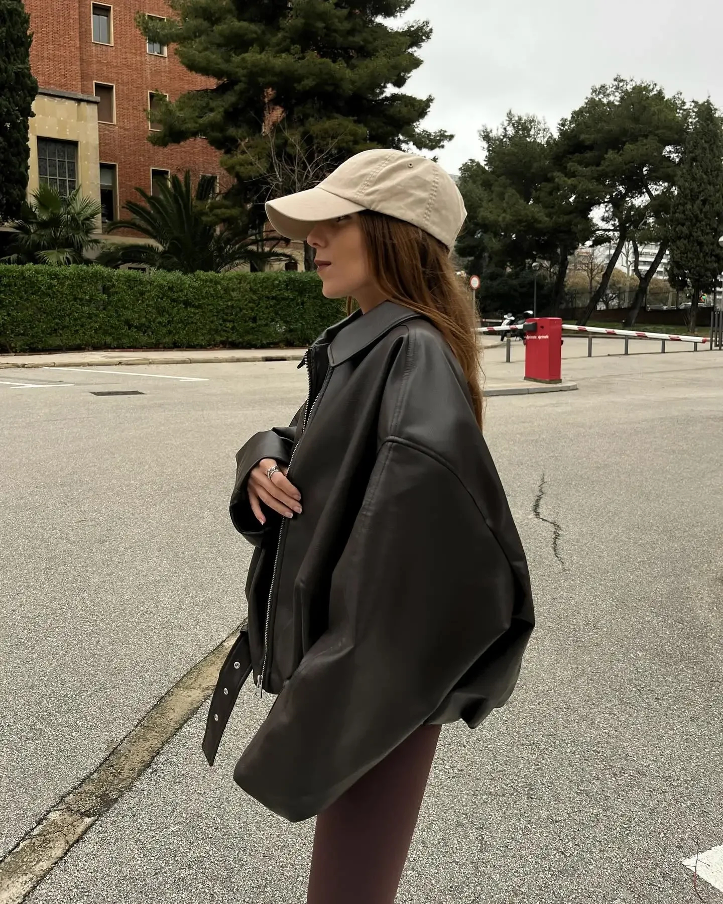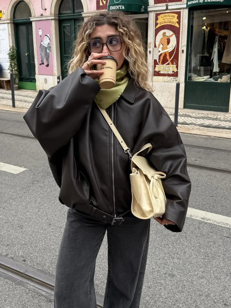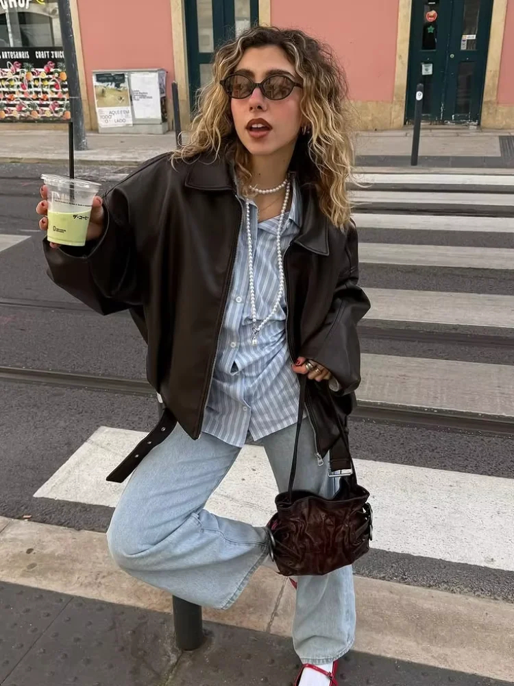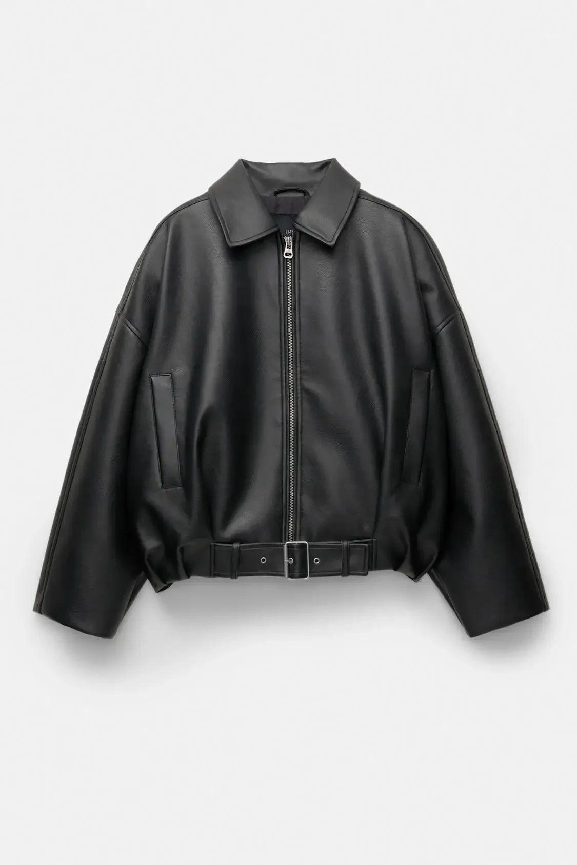 Description: This oversized faux leather jacket is a versatile staple for your wardrobe. Made of smooth, structured fabric, it combines edgy style with a relaxed fit that suits everyday wear. Suitable for daily commutes, casual gatherings, or weekend outings, it transitions effortlessly between styles with simple accessory swaps. Stay stylish and confident in this sleek piece that balances laid-back charm with contemporary sophistication.