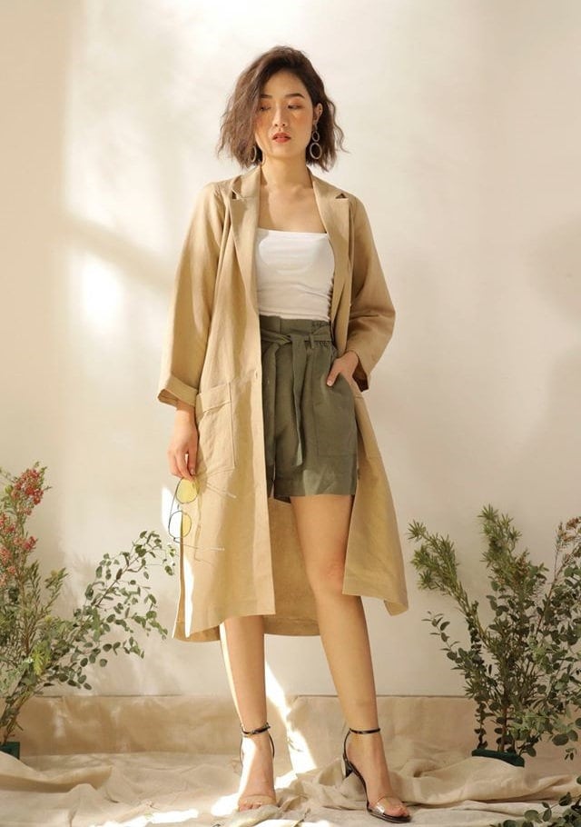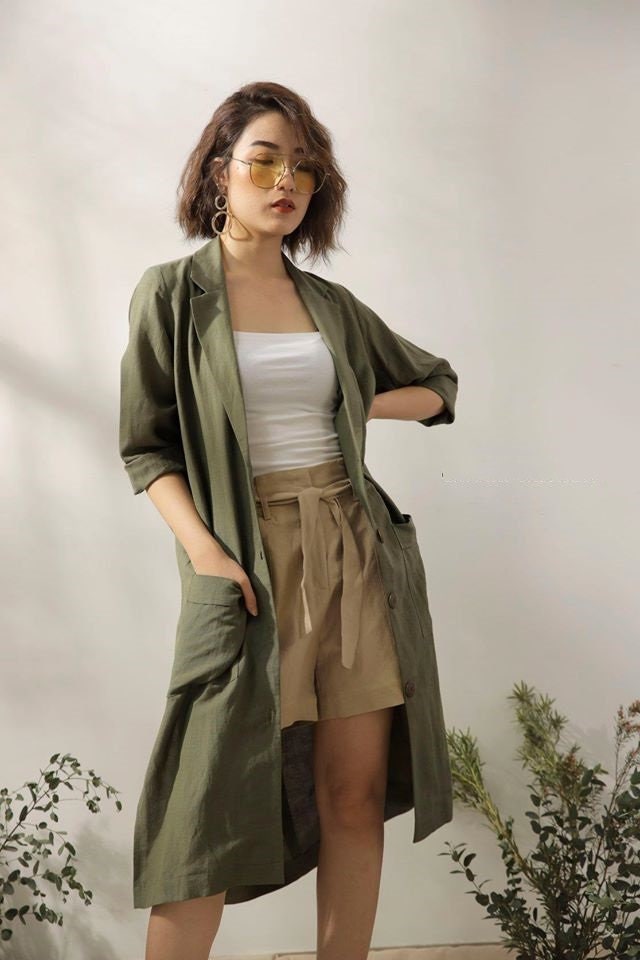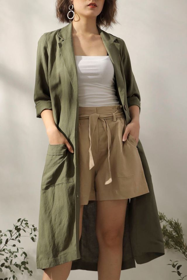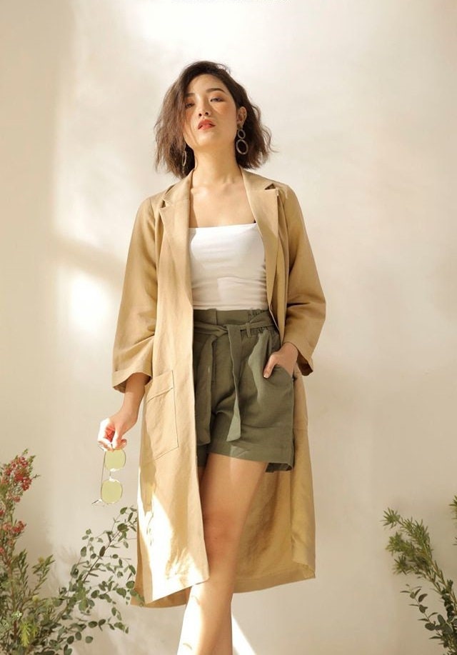 Casual Linen Jacket – Women Coat for Fall – Linen Duster Coat in Beige