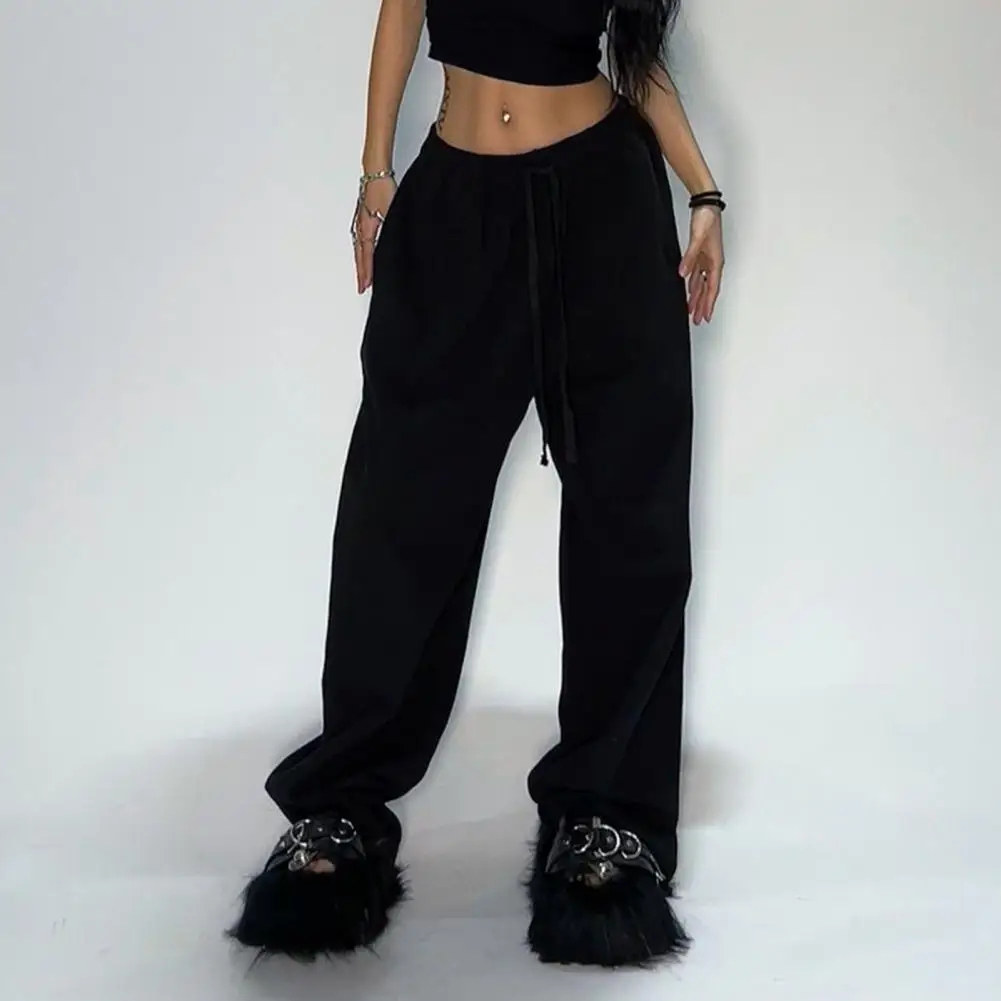 Casual Solid Sweatpants For Women High Waist Lace Up Loose Joggers Pant Classic Baggy Streetwear Female Sport Dance Trouser Y2K