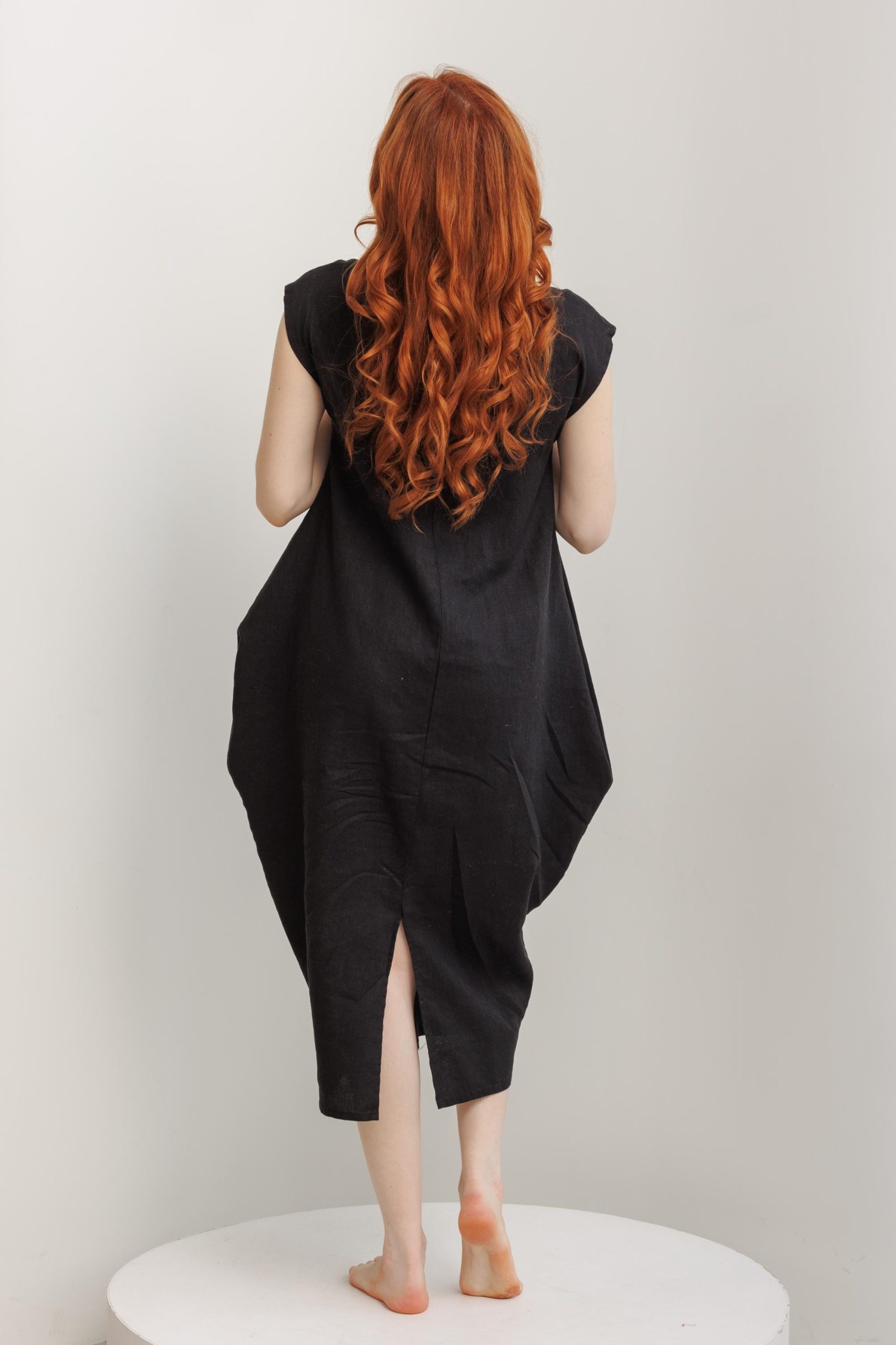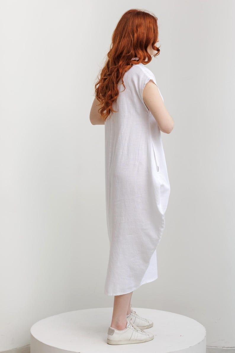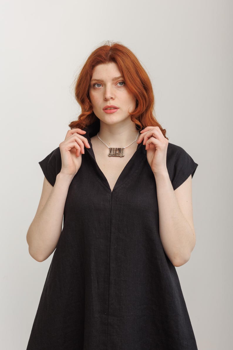This dress is a versatile addition to any closet: its minimalist design works for multiple occasions, from running errands to meeting friends. Dress it up with layered necklaces or keep it simple for a clean, timeless aesthetic—either way, it keeps you feeling comfortable and looking effortlessly chic.Chic Linen Ankle Dress: Stand Collar, Functional Pockets image 2