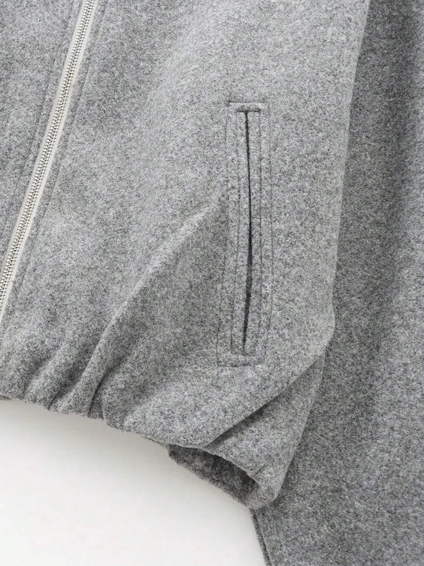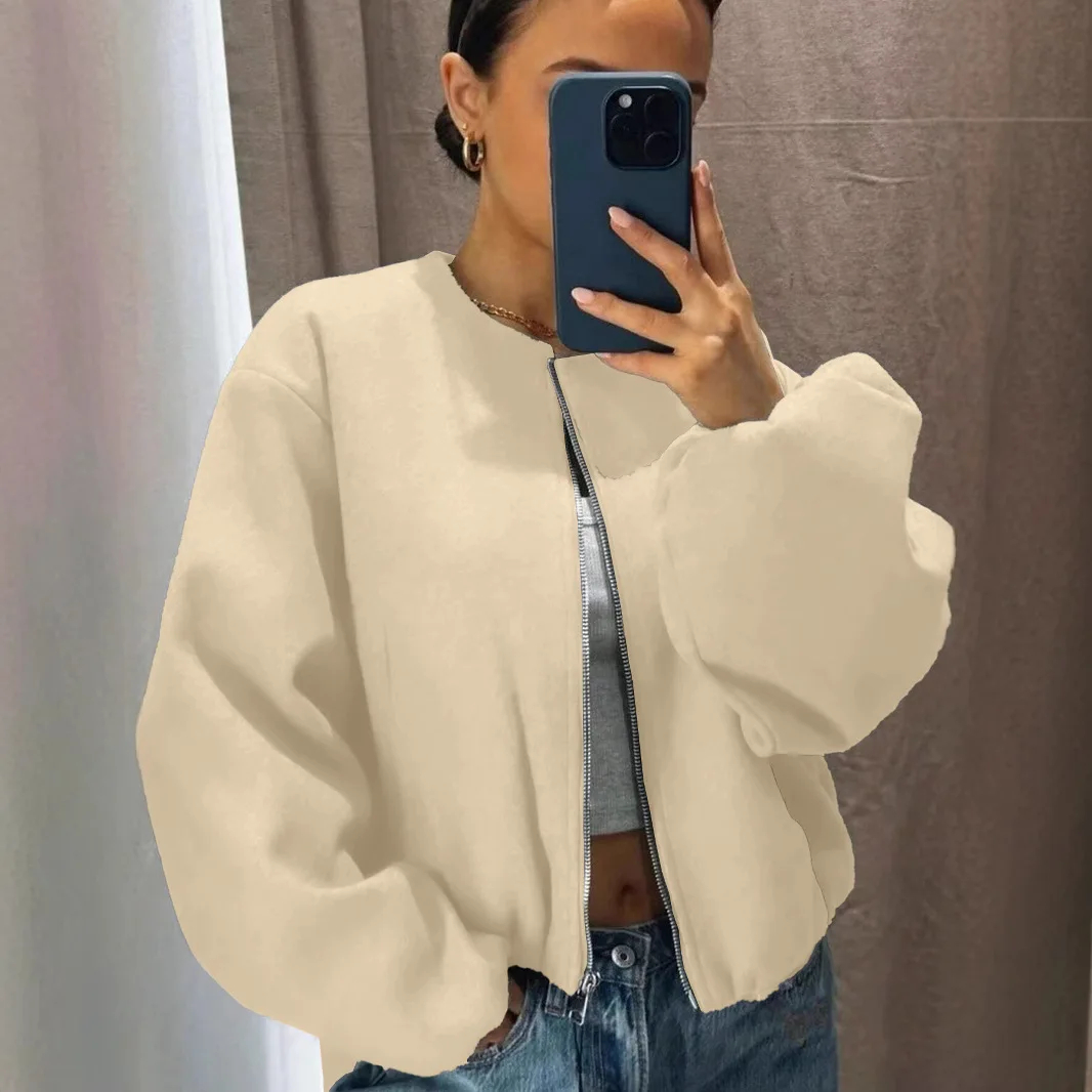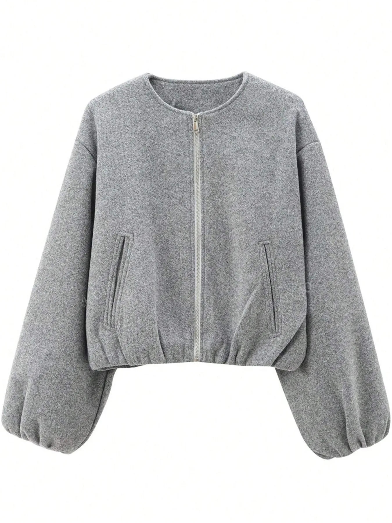 Description: This women’s long-sleeved zip-front jacket is a versatile addition to your wardrobe. Made of soft and structured fabric, it ensures warmth and style in autumn and winter. The zip-front design and balloon sleeves add a modern detail, and the cropped fit allows for effortless styling. Suitable for daily wear, street style, or casual outings, pair it with jeans, skirts, or pants for a chic look that can be accessorized to suit various occasions. Stay comfortable and fashionable with this trendy jacket.