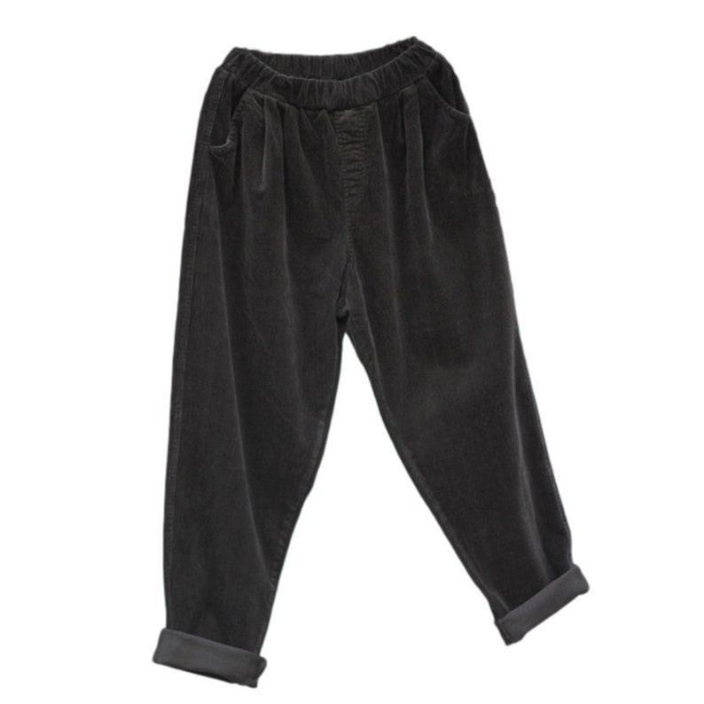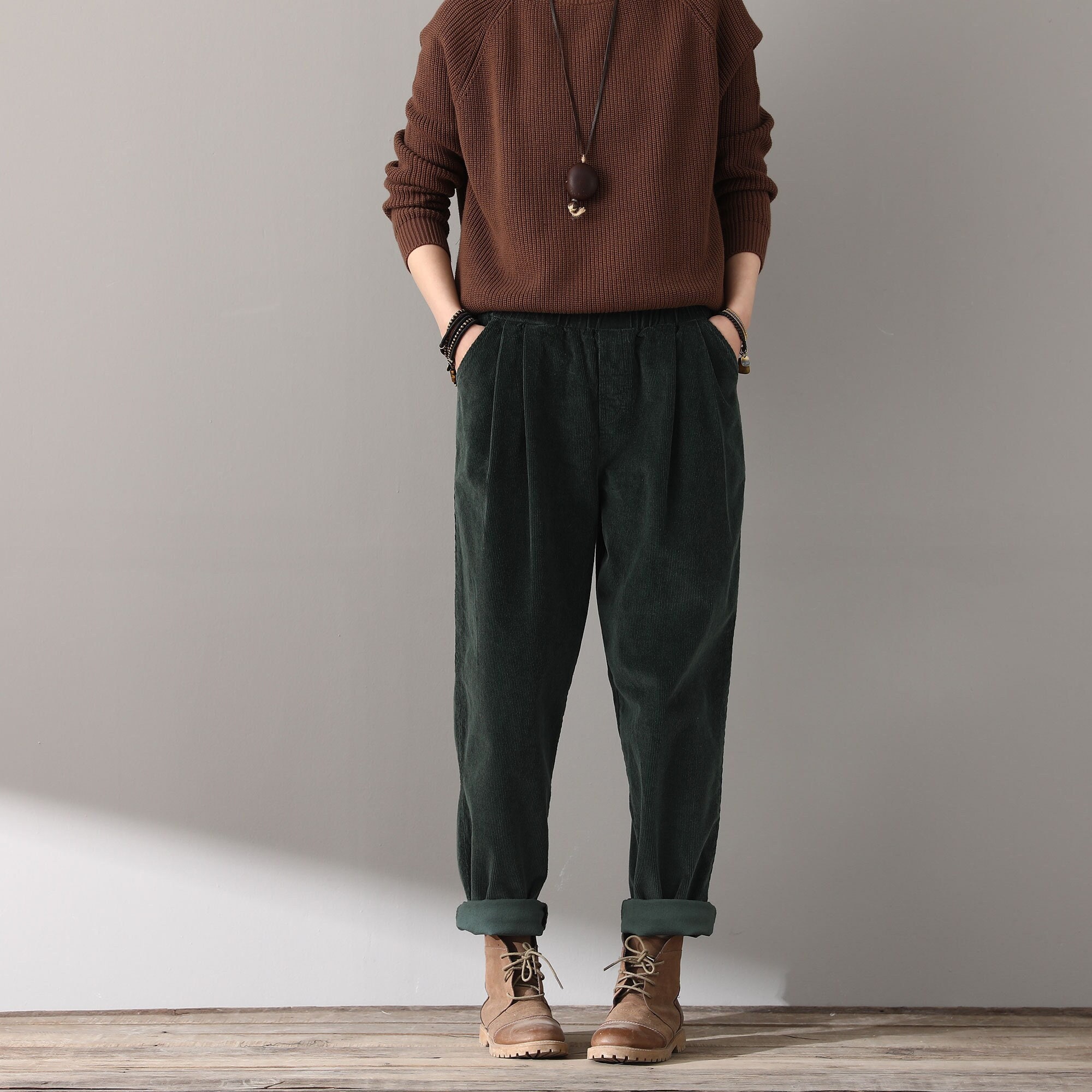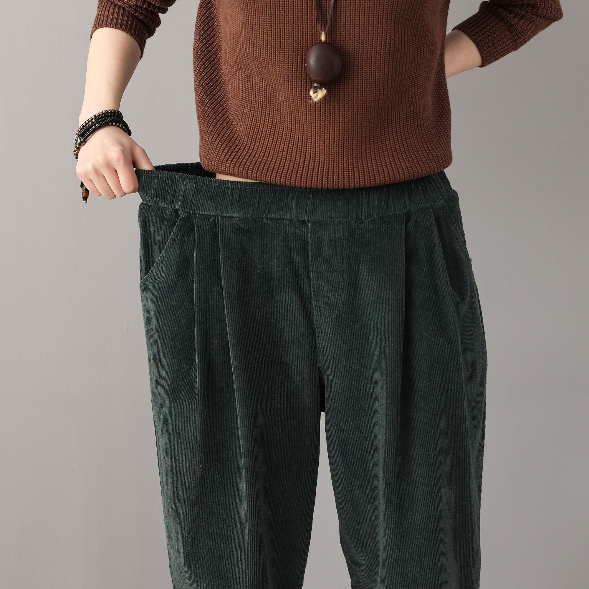 Corduroy Harem Pants, Elastic Waist, Oversized Cotton Trousers