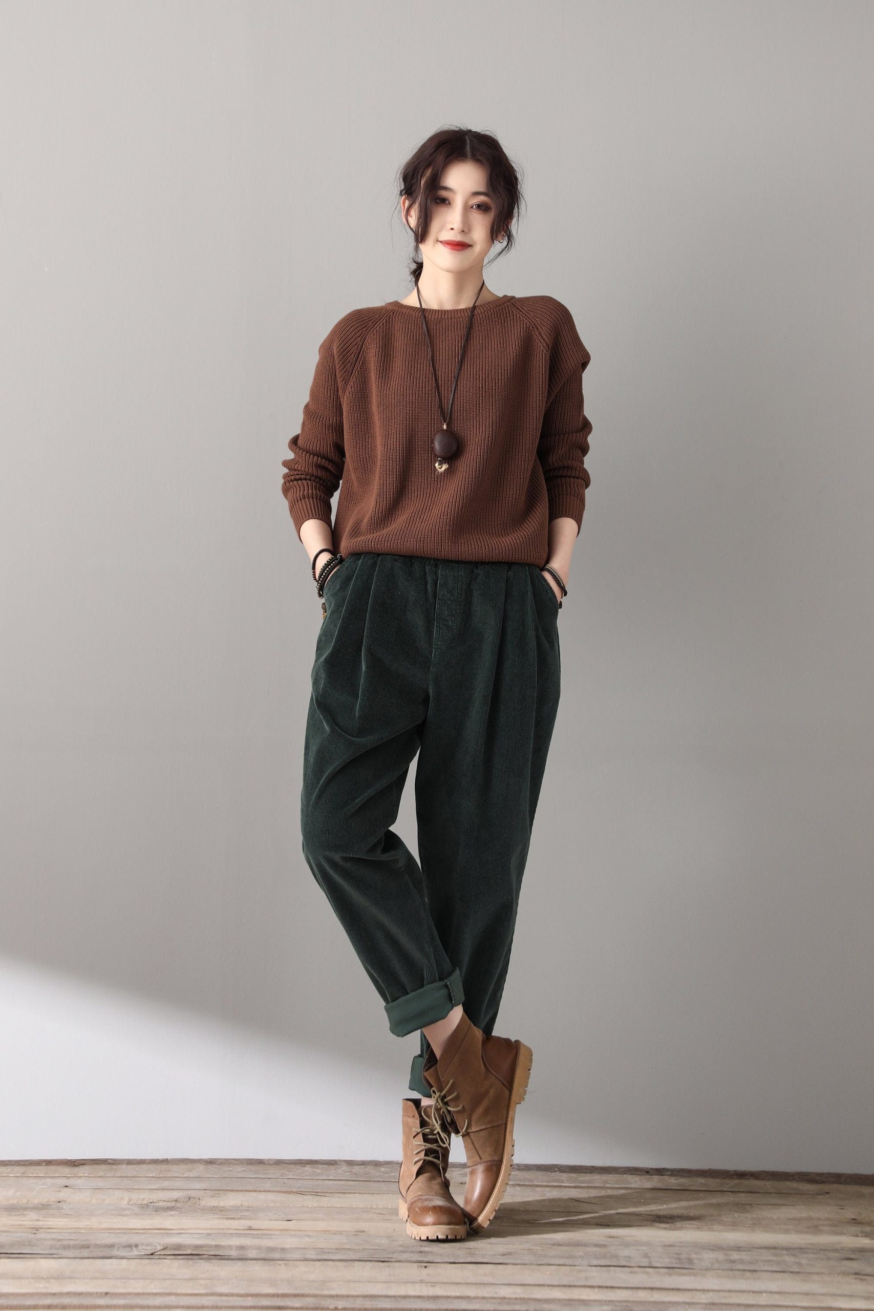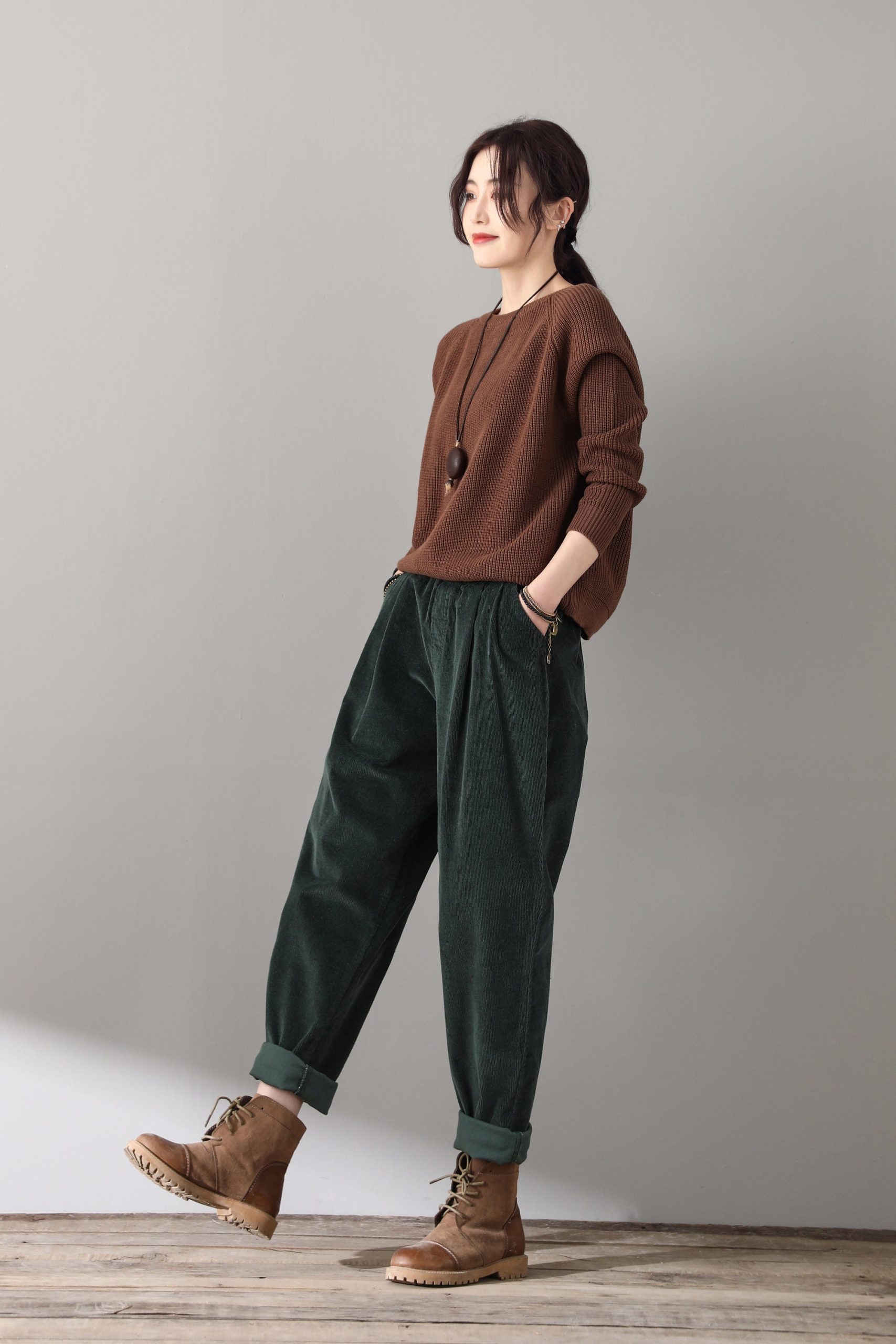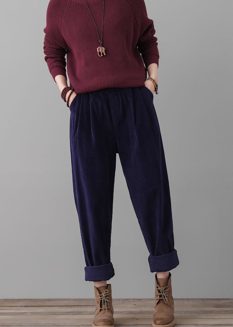 Corduroy Harem Pants, Elastic Waist, Oversized Cotton Trousers