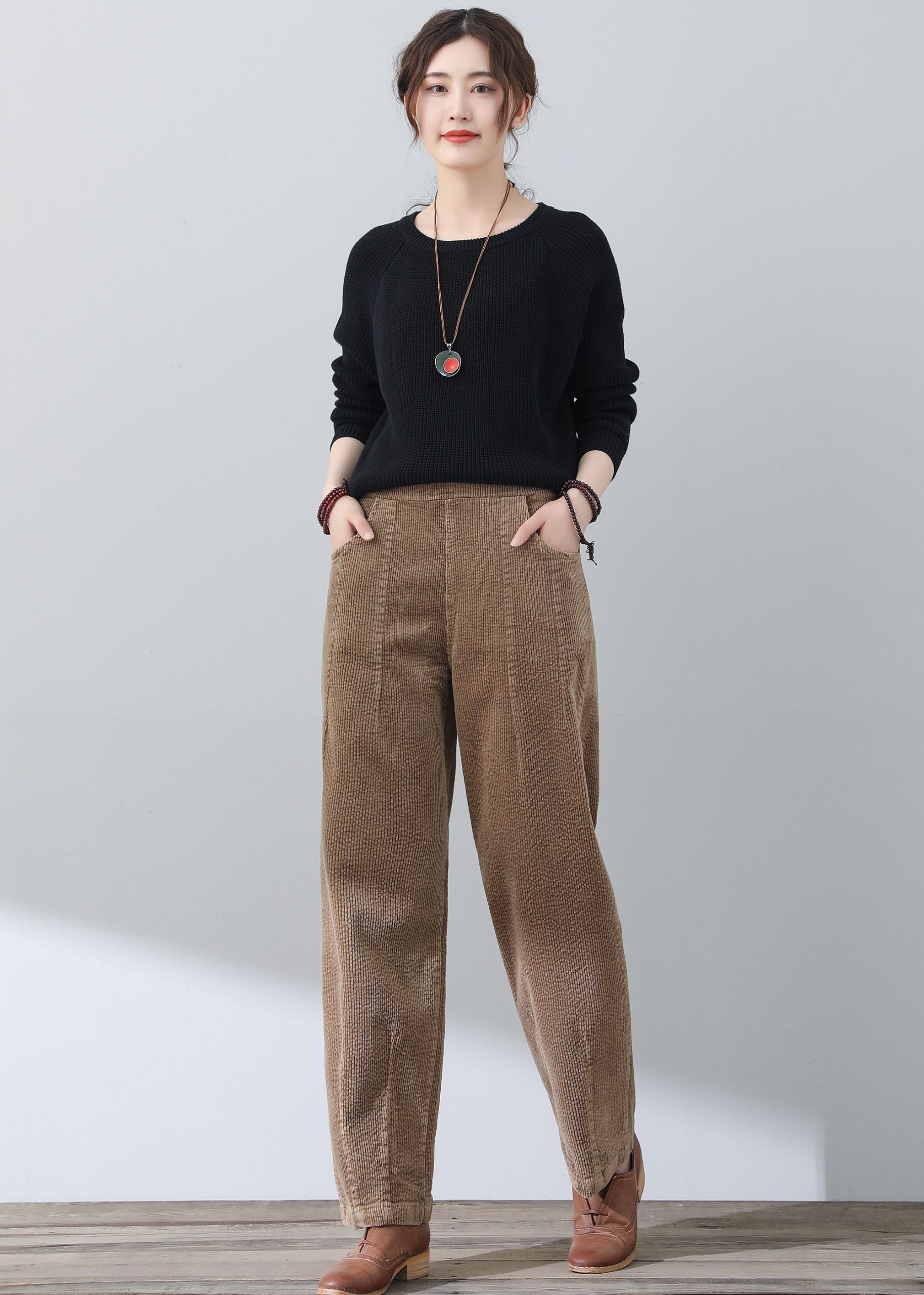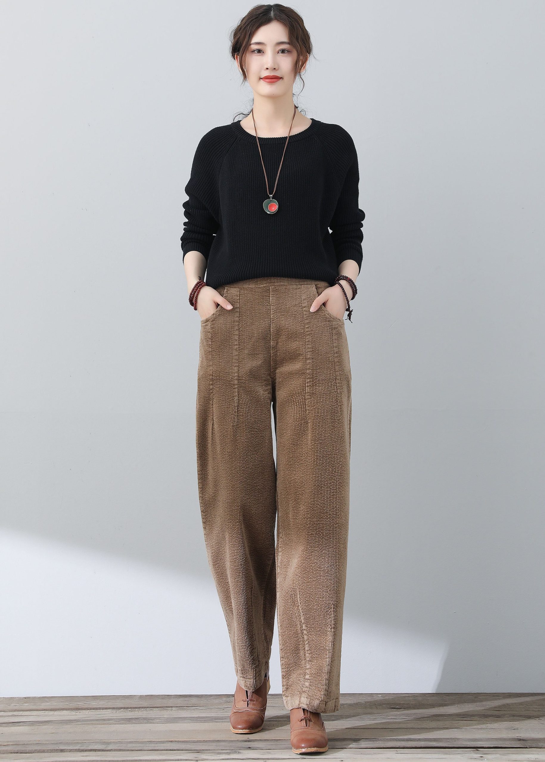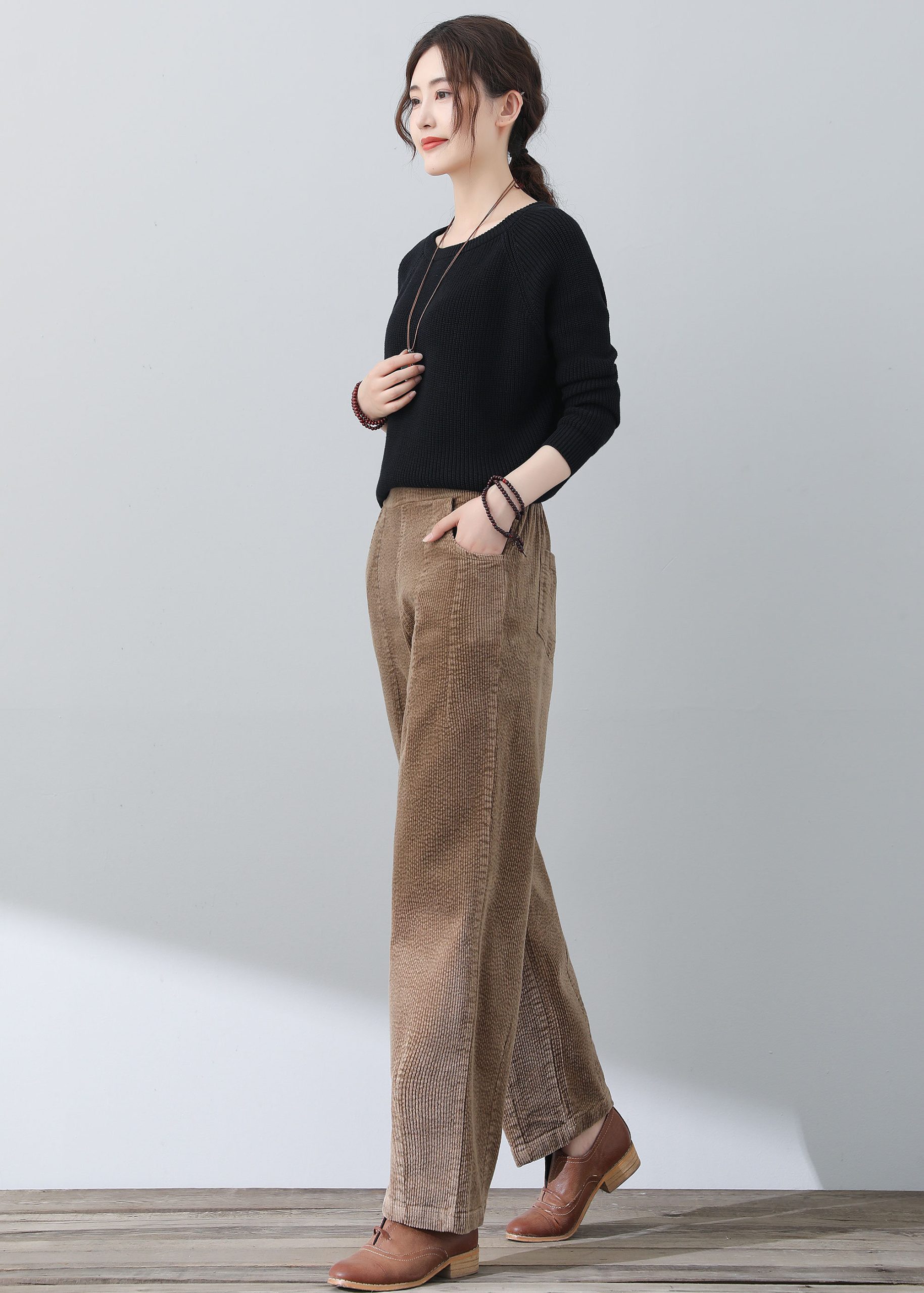 Corduroy Wide Leg pants, Corduroy Long Pants, Women Long Pants, Elastic Waist Corduroy Pants, Khaki Corduroy Pants, Ylistyle C3020
