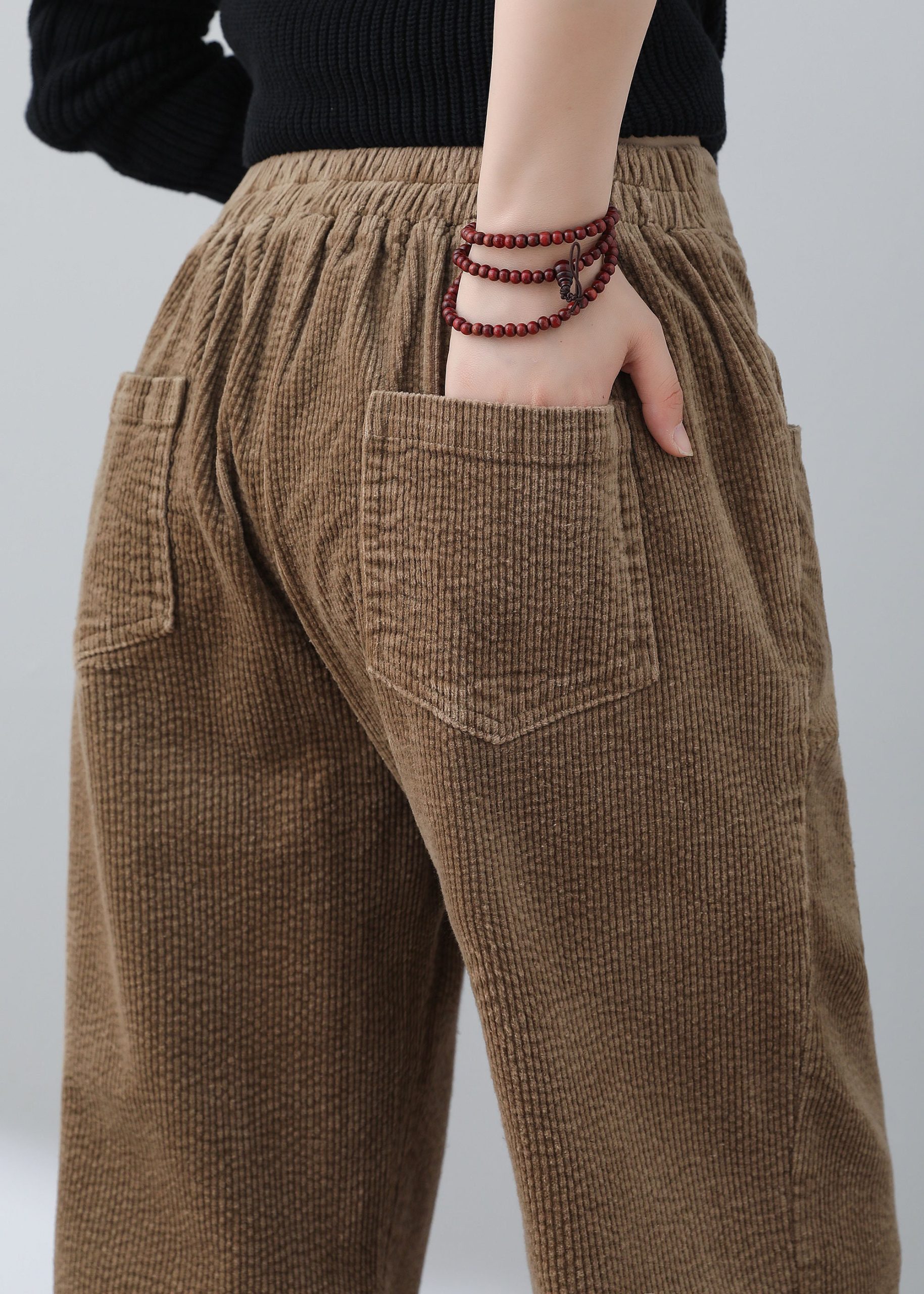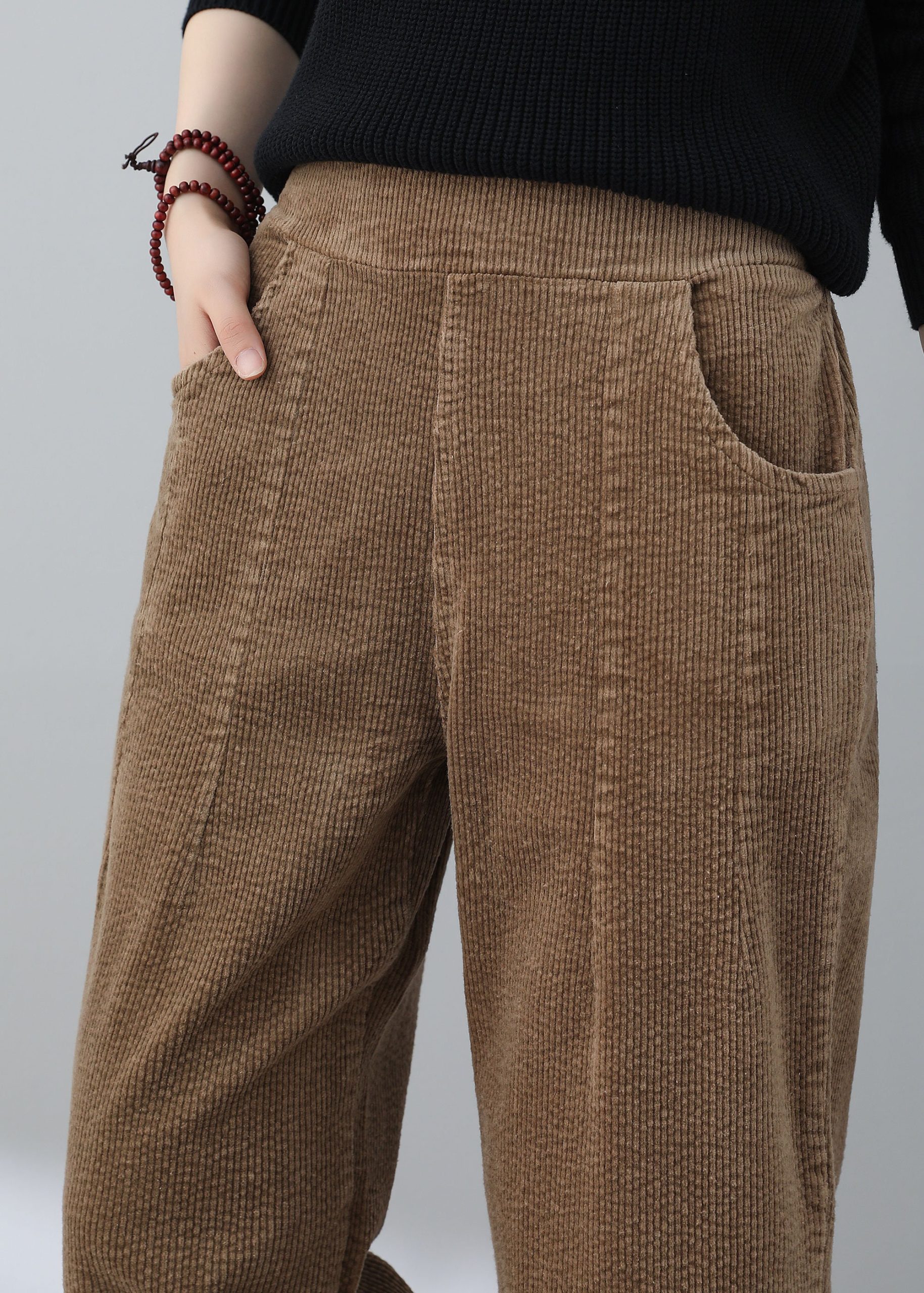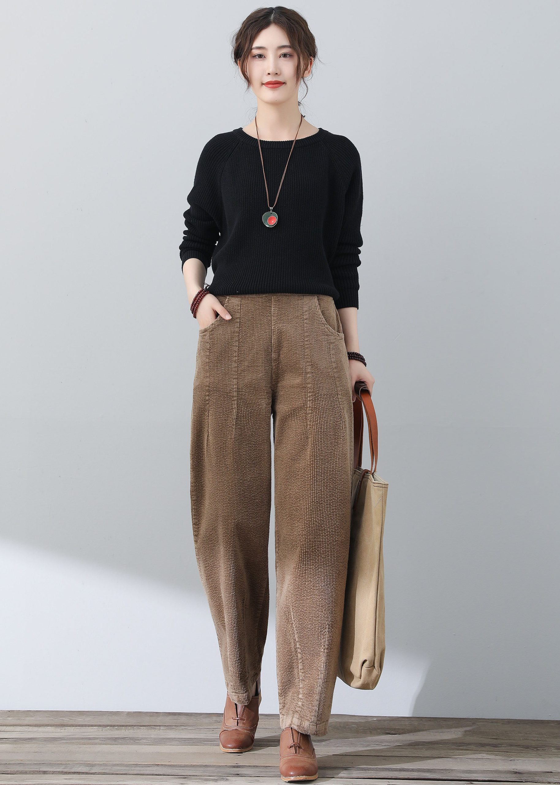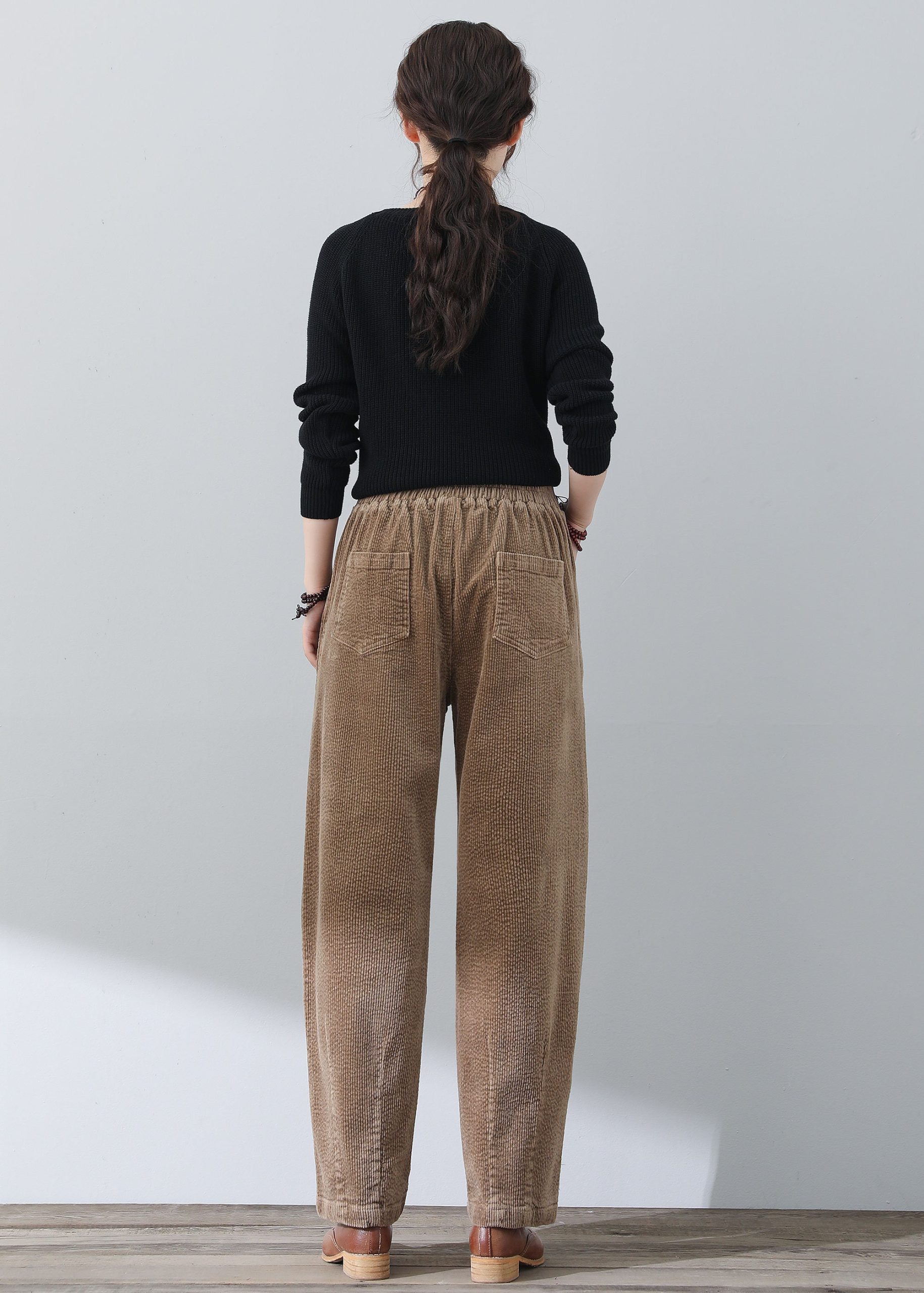 Corduroy Wide Leg pants, Corduroy Long Pants, Women Long Pants, Elastic Waist Corduroy Pants, Khaki Corduroy Pants, Ylistyle C3020