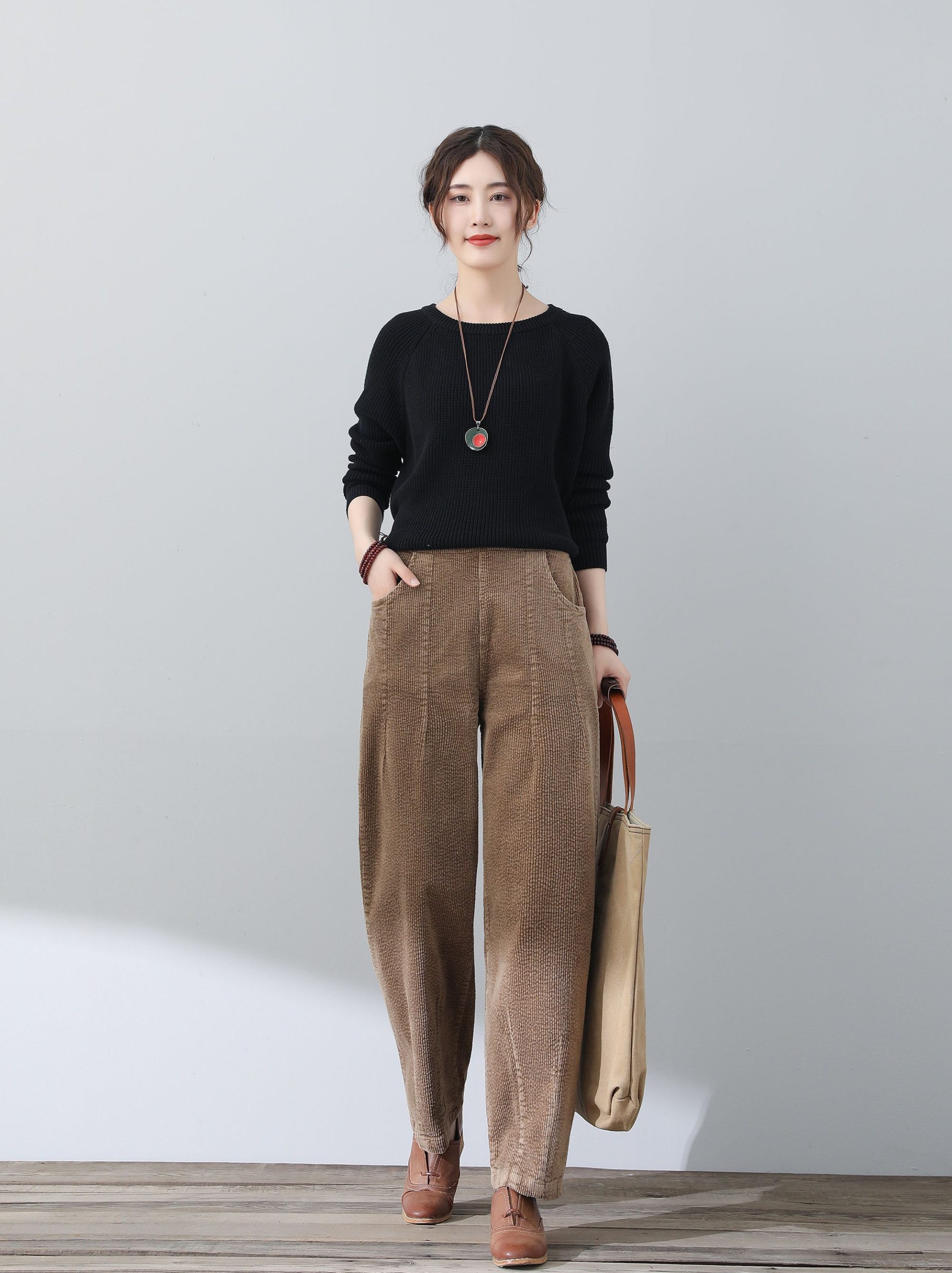 Crafted from premium corduroy material, these pants offer exceptional softness and gentle warmth — ideal for cool spring, autumn, and mild winter days. The textured fabric balances cozy comfort with a relaxed, stylish drape, keeping you at ease while looking put-together.