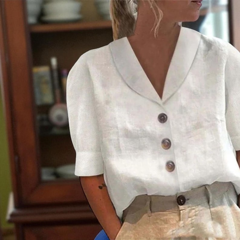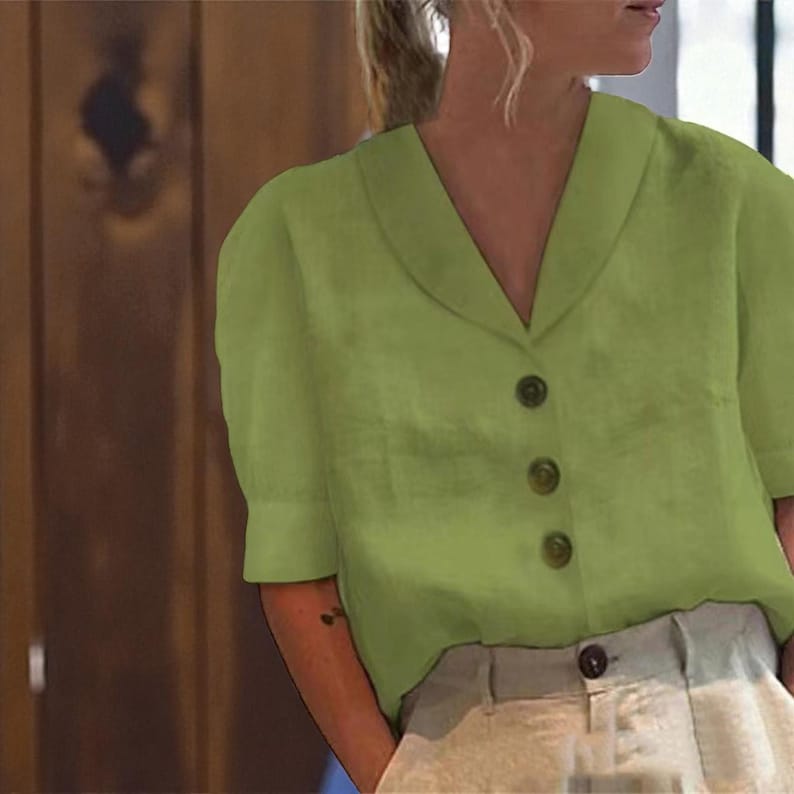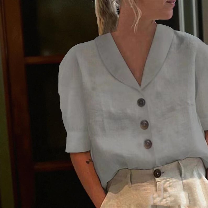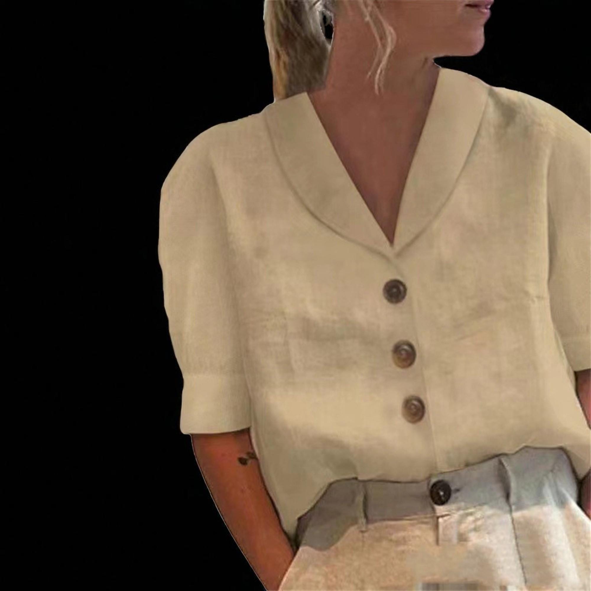 Crafted from premium linen-blend material, this blouse offers exceptional softness and breathability—keeping you cool and comfortable in mild to warm seasons spring, summer, or early autumn while maintaining a polished, textured style.