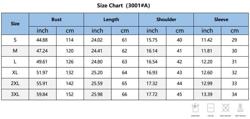 | Size | S US women's letter, M US women's letter, L US women's letter, XL US women's letter, 2X US women's letter, 3X US women's letter |