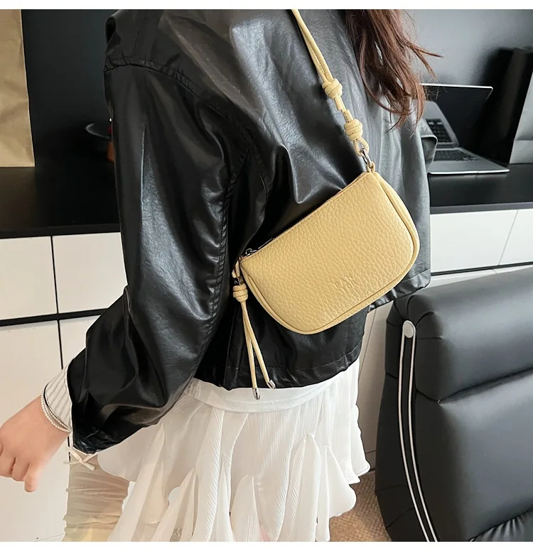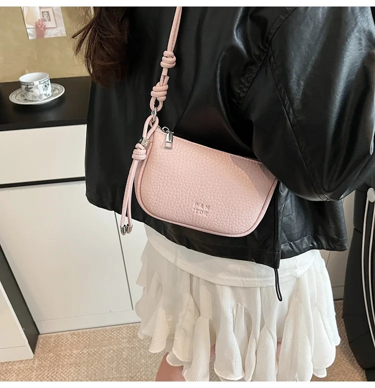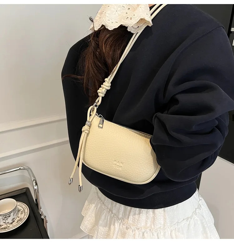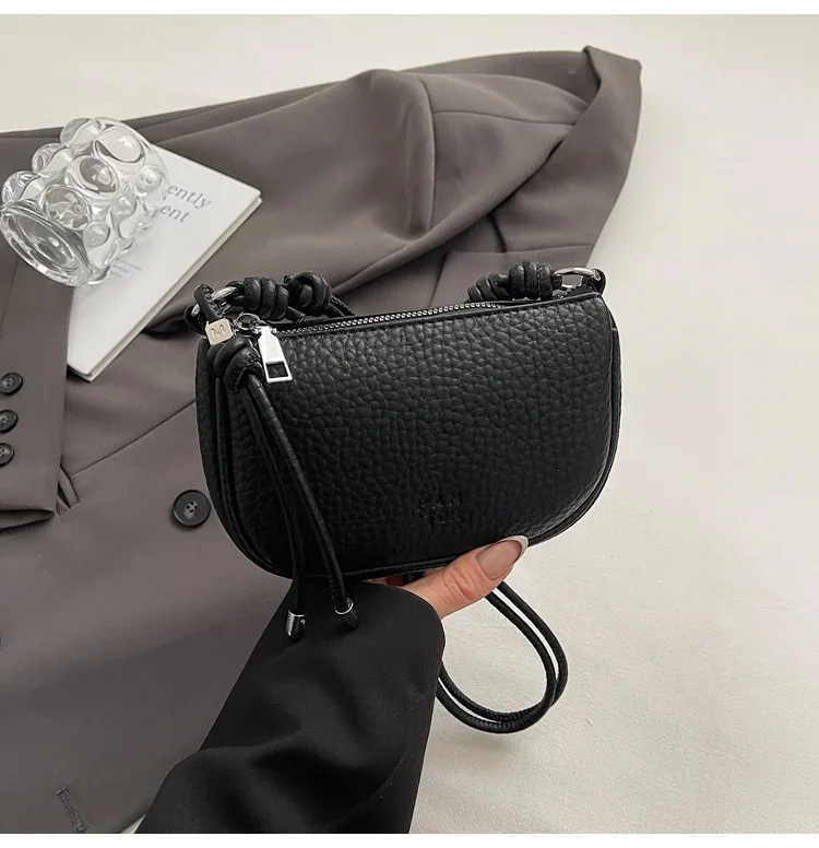 Chic Adjustable Strap Detail: Elevate your ensemble with the knotted decorative strap featuring a flexible, adjustable design. This playful yet polished element adds a trendy, personalized flair to the bag while allowing you to customize the carrying length for different occasions.