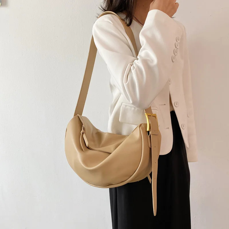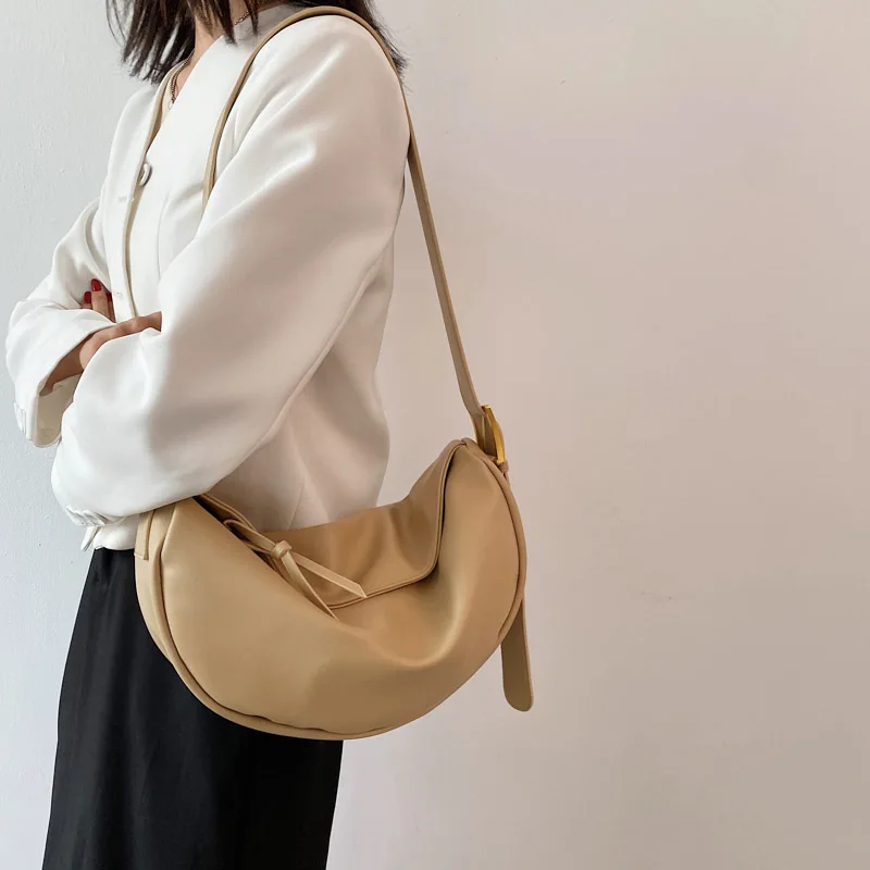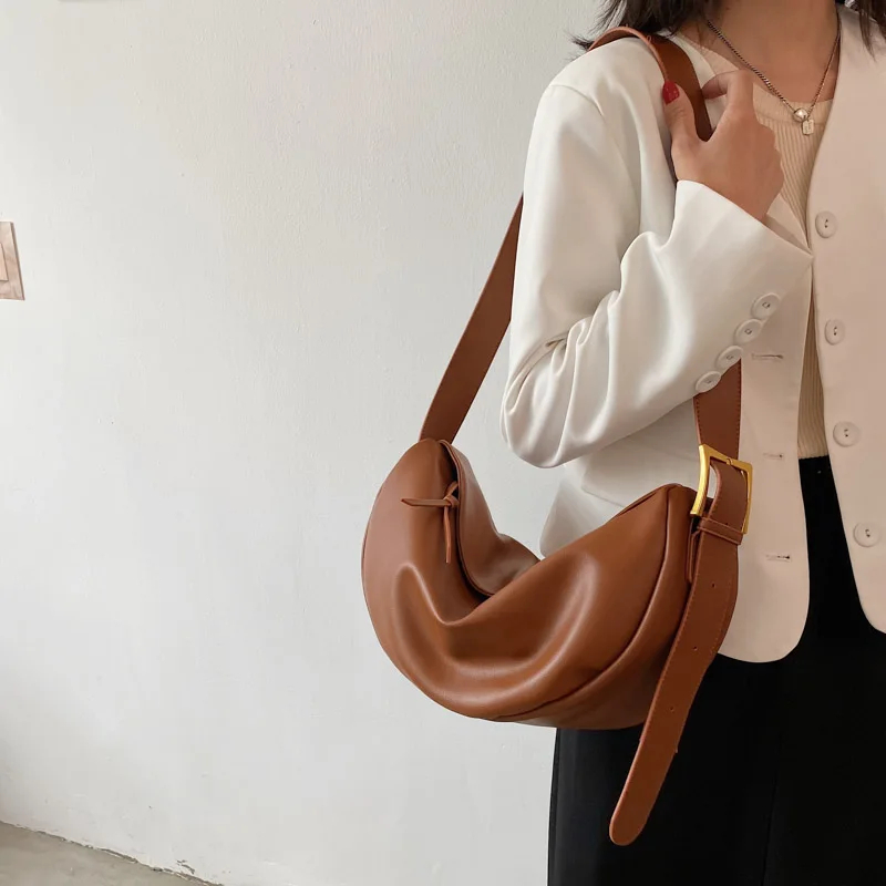 Eye-Catching Metal Hardware & Crescent Silhouette: Featuring stylish metal hardware and a trendy crescent shape, this bag adds a personalized and fashionable touch to your look while providing practical functionality for carrying essentials.