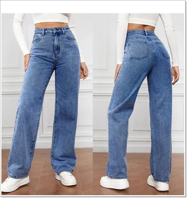 Durable & Stylish: Crafted from premium denim fabric, these jeans offer exceptional durability and a stylish appearance, ensuring a trendy look in spring, autumn, and winter without compromising comfort.Classic Wide-Leg Design: Featuring a timeless wide-leg cut, these jeans add a sophisticated and retro-inspired touch to your look, perfect for creating a chic and elongated silhouette.Practical Pocket Detail: Elevate your outfit with the classic front and back pockets that enhance both style and functionality. These pockets offer convenient storage for small essentials like keys or a phone.Flattering Fit: Designed in a wide-leg fit, these women’s jeans flatter various body shapes and provide a comfortable wearing experience, allowing you to showcase confidence and a fashionable appearance effortlessly.Versatile Styling: Perfect for various occasions, these jeans pair seamlessly with crop tops, blouses, or sweaters. Customize your look by accessorizing with different shoes, bags, and jewelry to suit settings from daily commutes to casual outings or even retro-themed events.