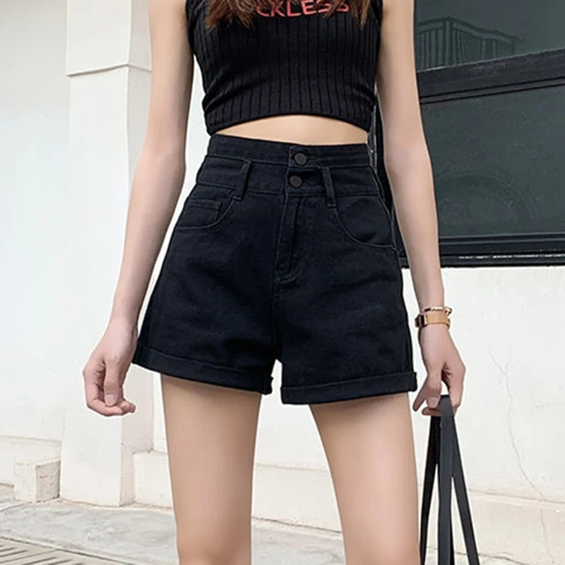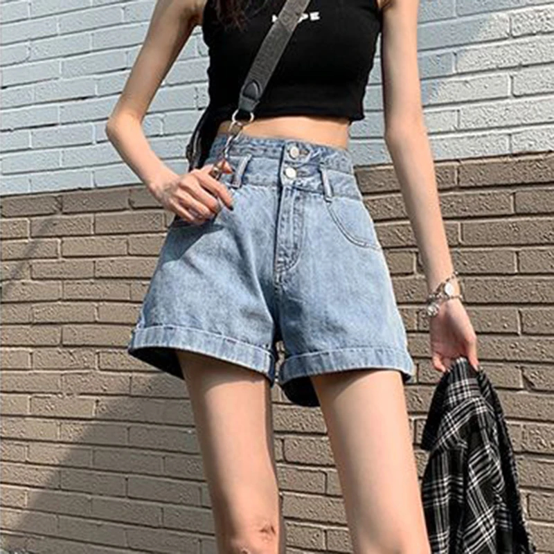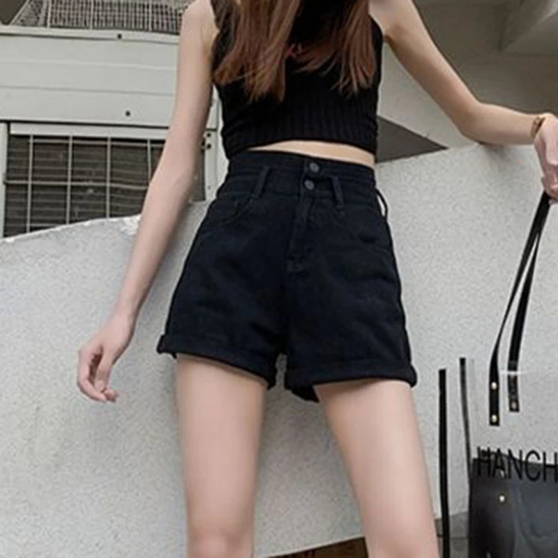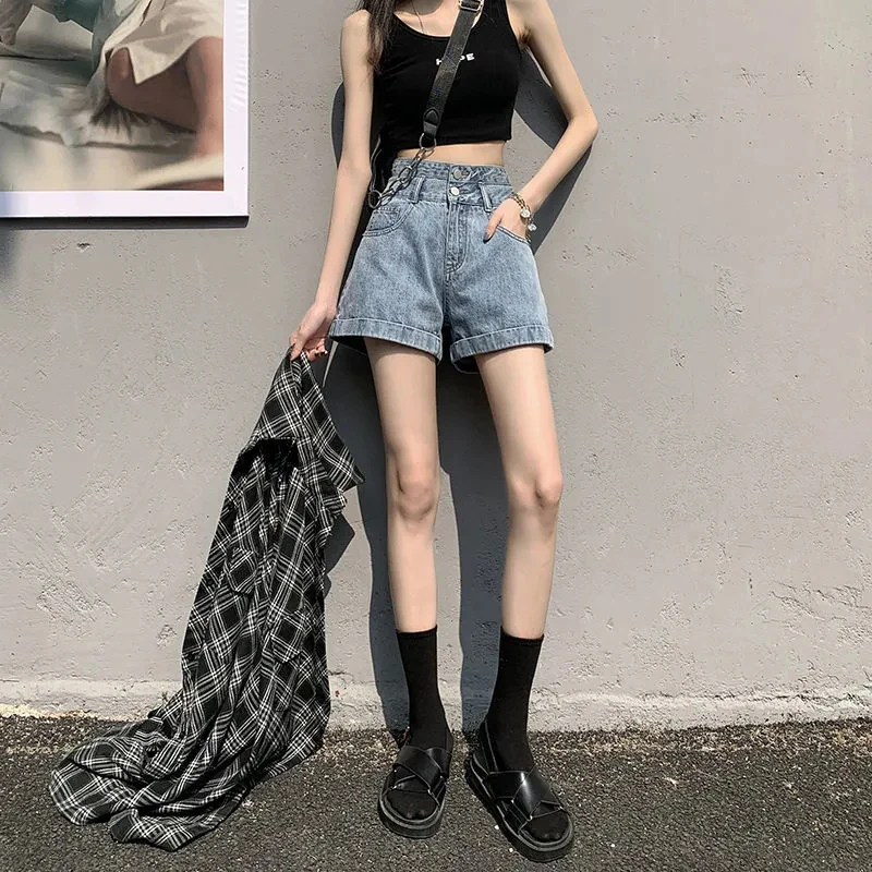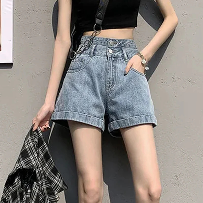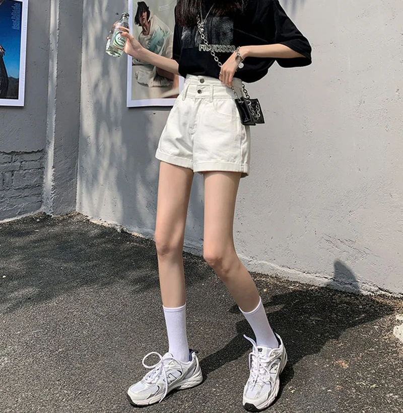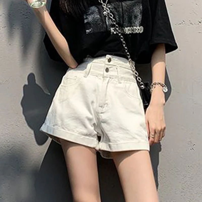 Denim Shorts Women Summer New White Simple Streetwear High Waist Short Jeans Korean Fashion All Match A Line Denim Shorts