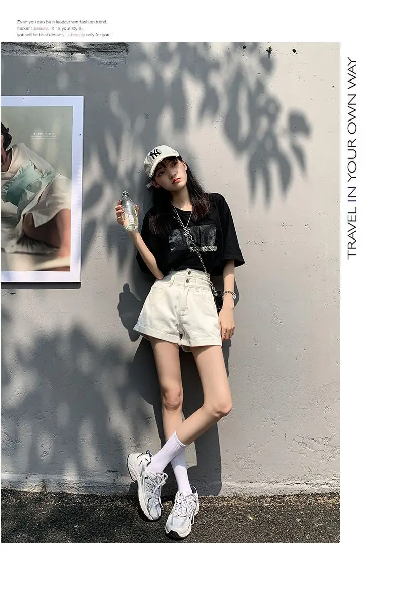 成为第一个“Denim Shorts Women Summer New White Simple Streetwear High Waist Short Jeans Korean Fashion All Match A Line Denim Shorts” 的评价者