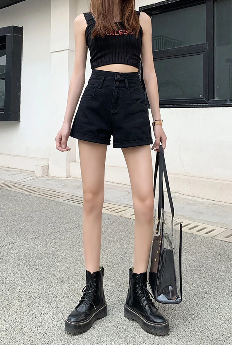 Description: These women’s denim shorts are a versatile addition to your wardrobe. Made of soft and durable denim fabric, they ensure comfort in spring and summer. The high-waist with double-button detail adds a stylish touch, and the practical pockets enhance both style and functionality. The tailored fit flatters your figure, making it suitable for daily wear, street style, or casual weekend activities. Pair it with tees, crop tops, or blouses for a chic look that can be accessorized to suit various occasions. Stay comfortable and fashionable with this trendy denim short.