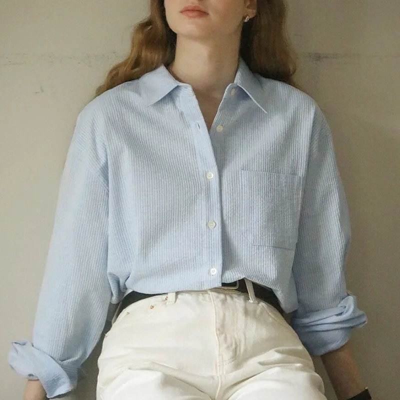 Oversized Fit: Designed in an oversized fit, this women’s long-sleeved shirt offers a comfortable wearing experience, exuding a confident and effortless vibe suitable for various body shapes.