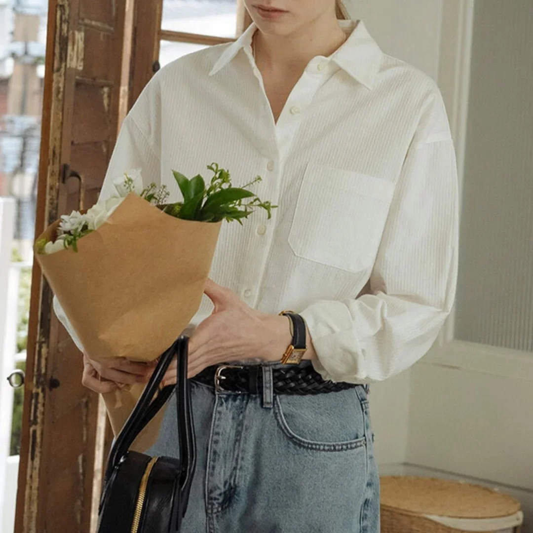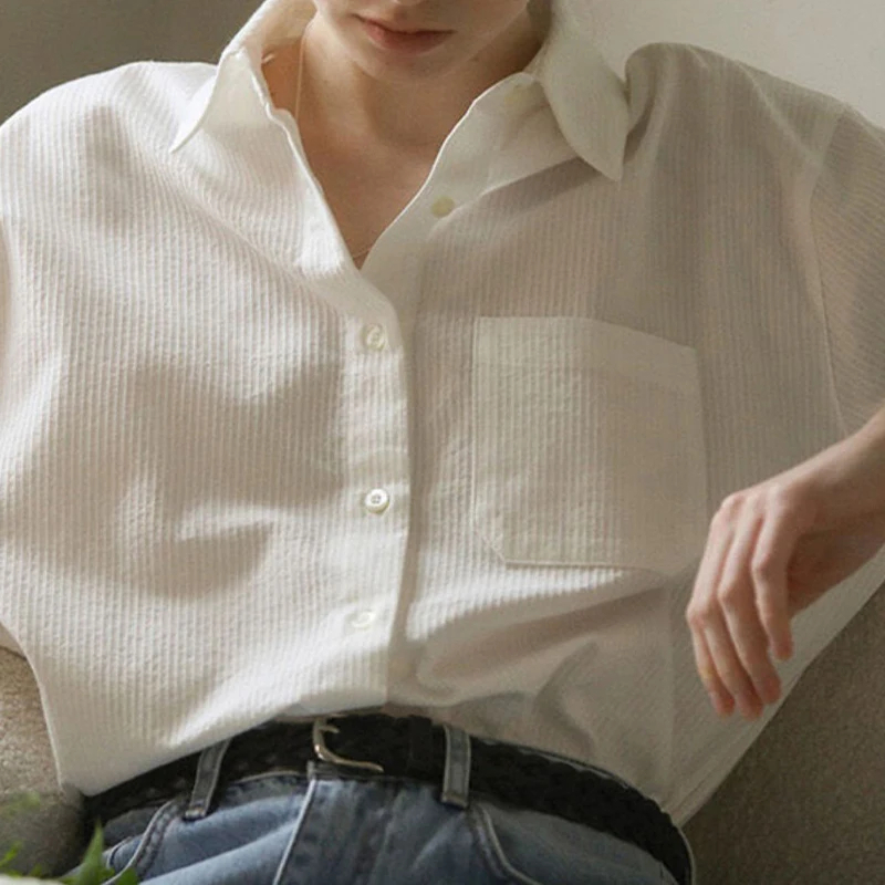Versatile Styling: Perfect for various occasions, this shirt pairs seamlessly with jeans, skirts, or tailored pants. Customize your look by accessorizing with different belts, bags, and shoes to transition from casual chic to a slightly polished style effortlessly.