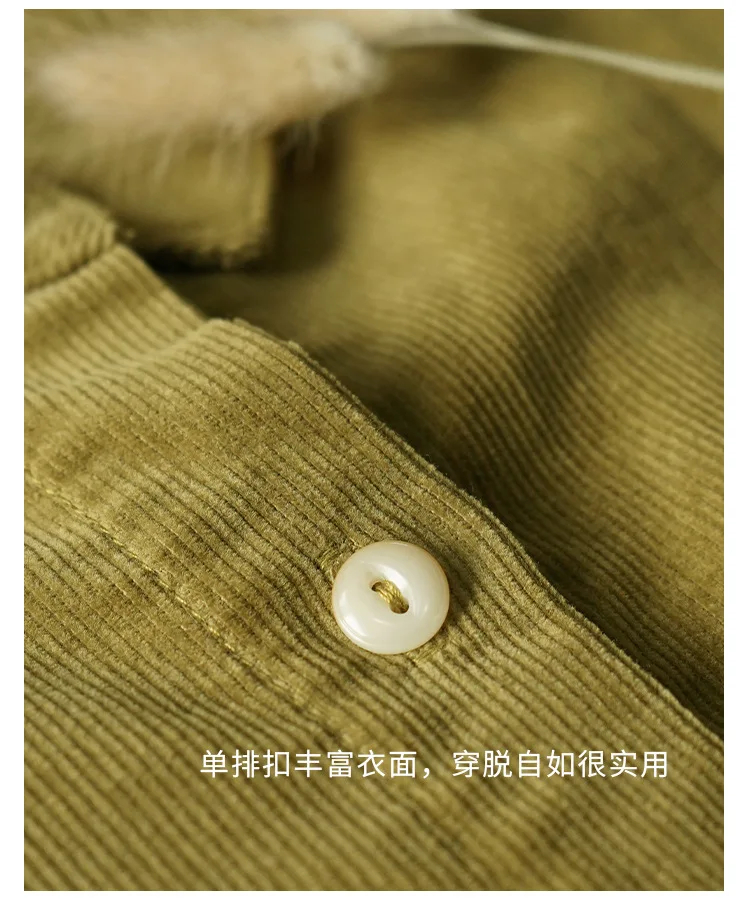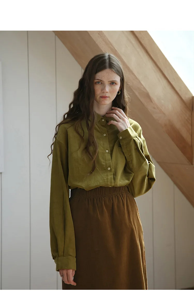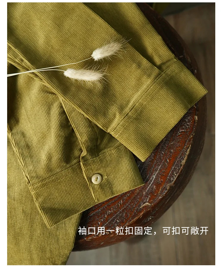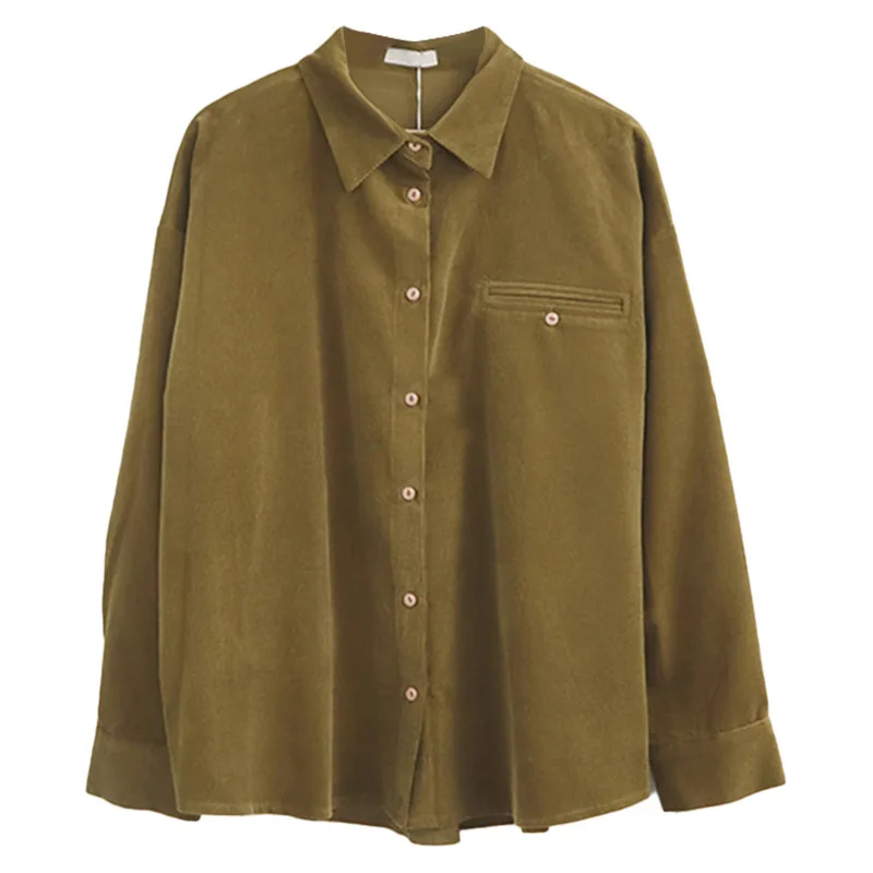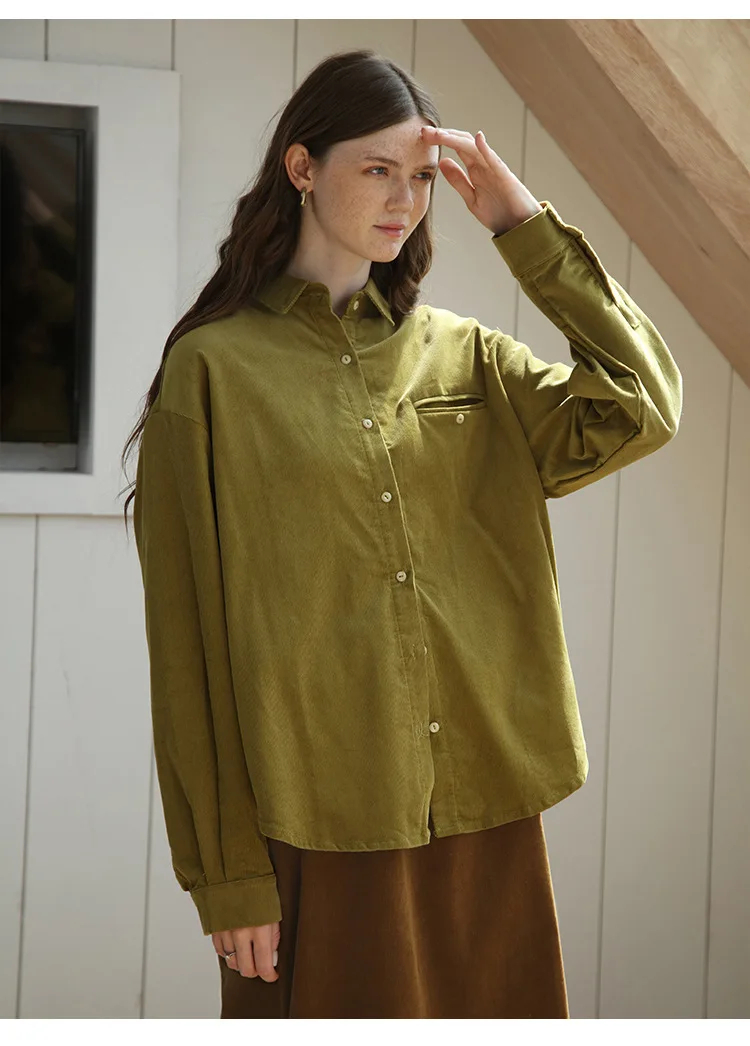 Elegant Corduroy Ladies Shirt Autumn Winter New French Women's Loose Long-Sleeved Lapel Shirts With Pocket Streetwear