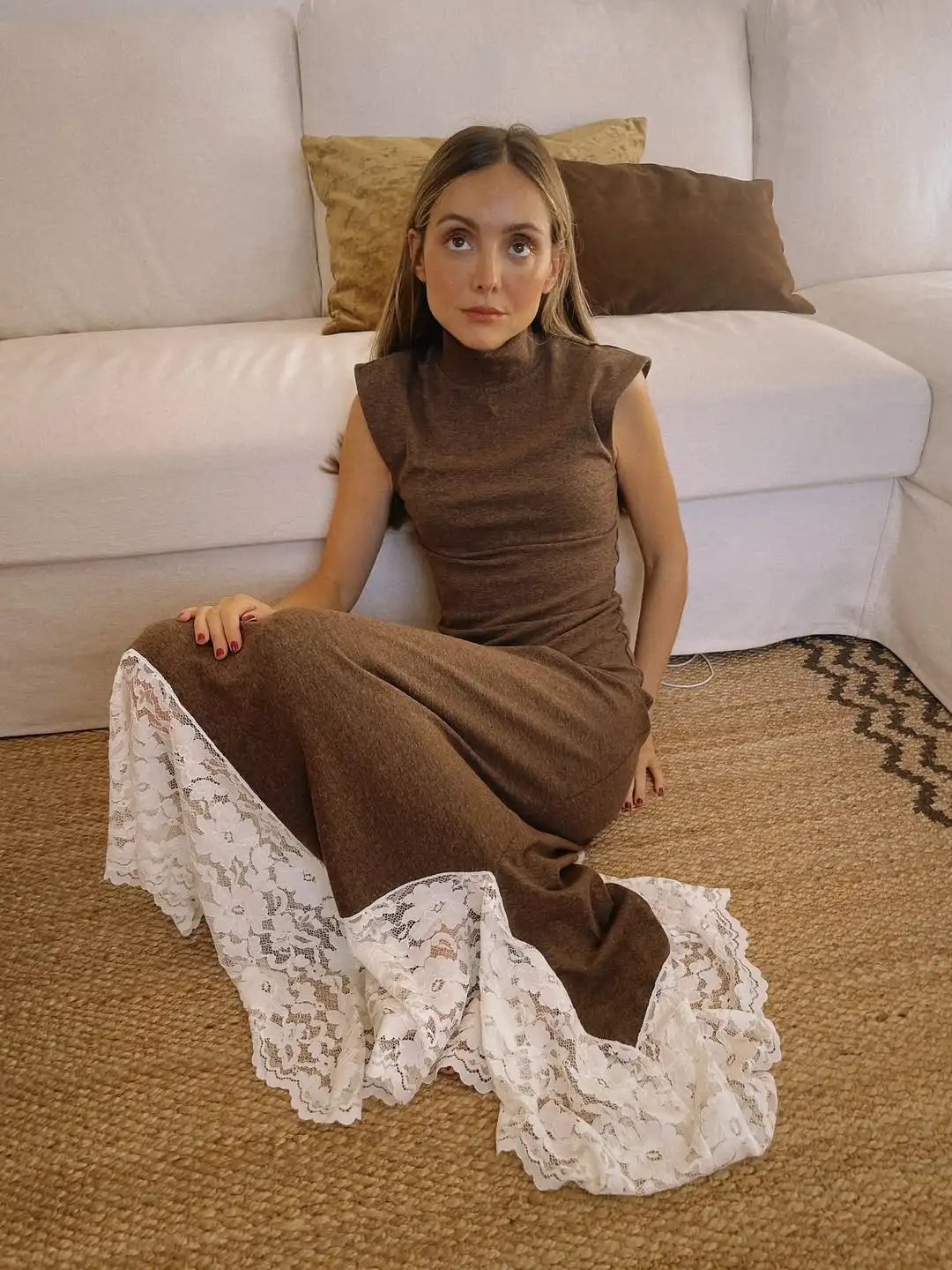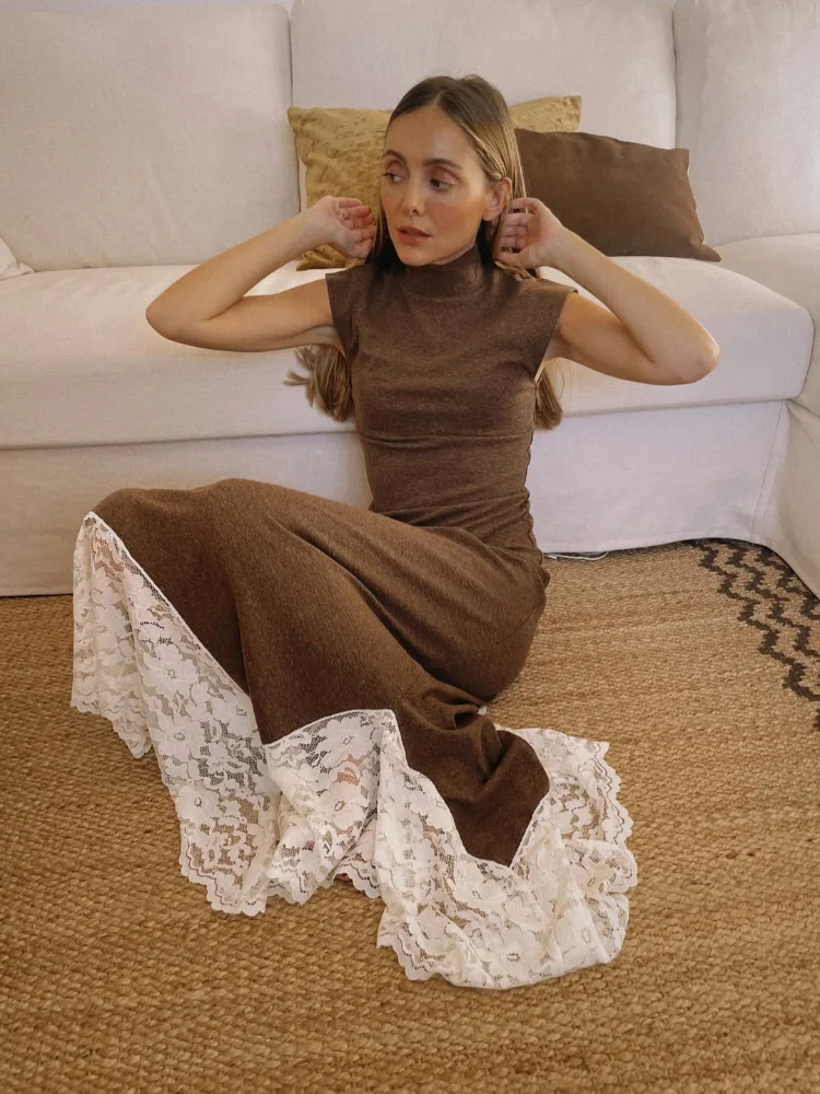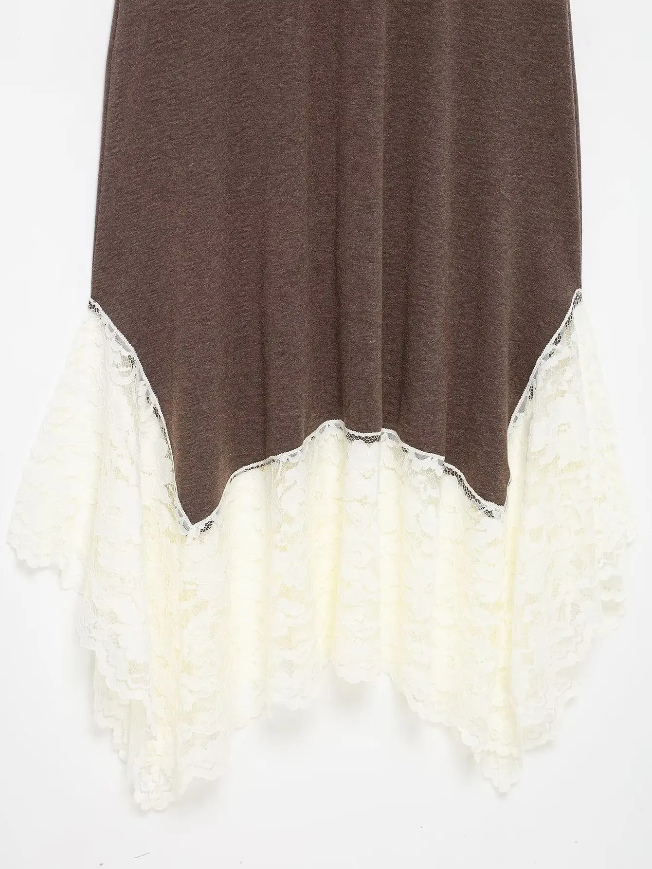 Lace Hem Detail: Elevate your outfit with the delicate lace hem that adds a feminine and trendy flair to the dress. The lace not only enhances the style but also creates a beautiful contrast with the knit fabric, adding visual interest.