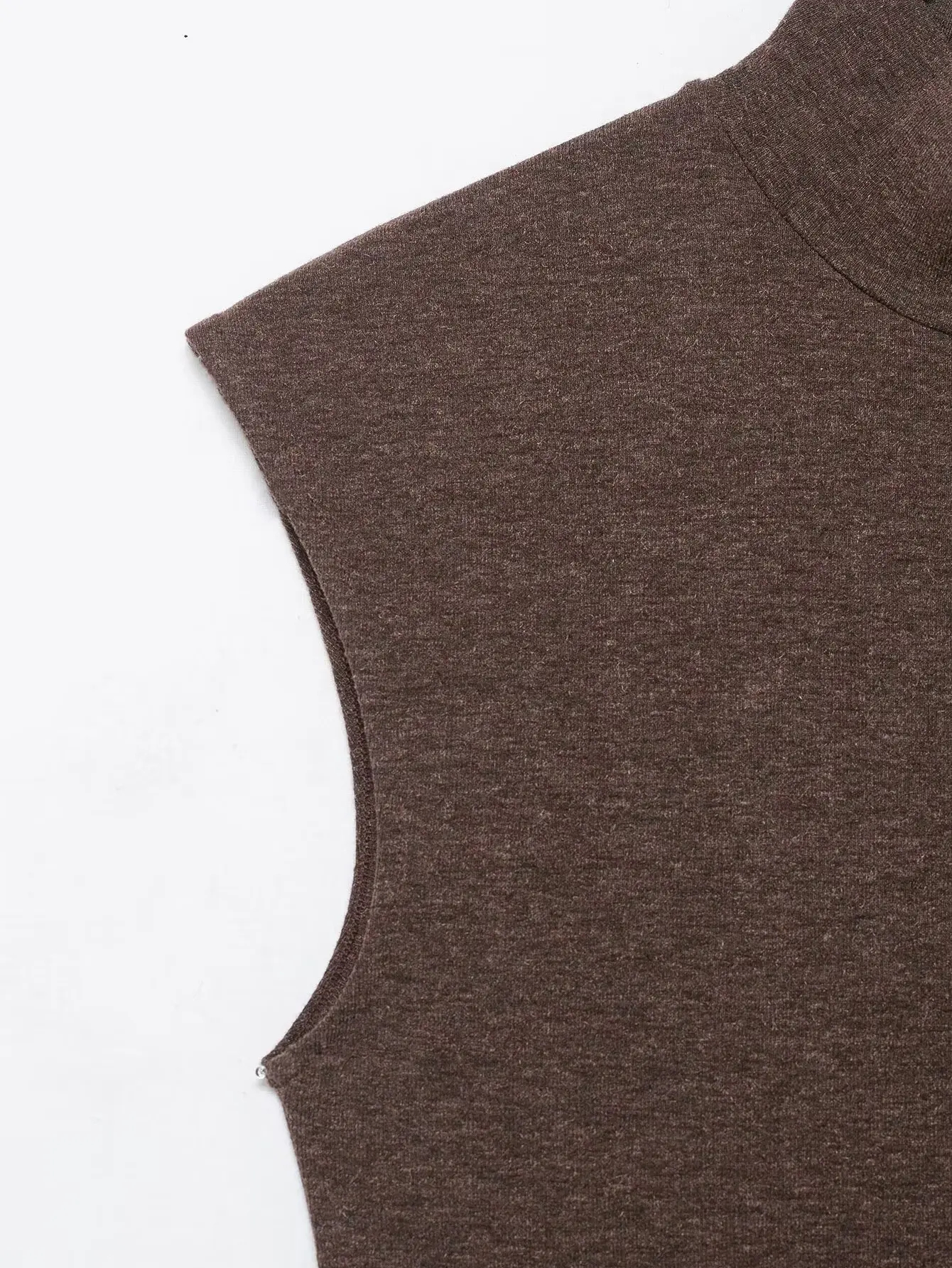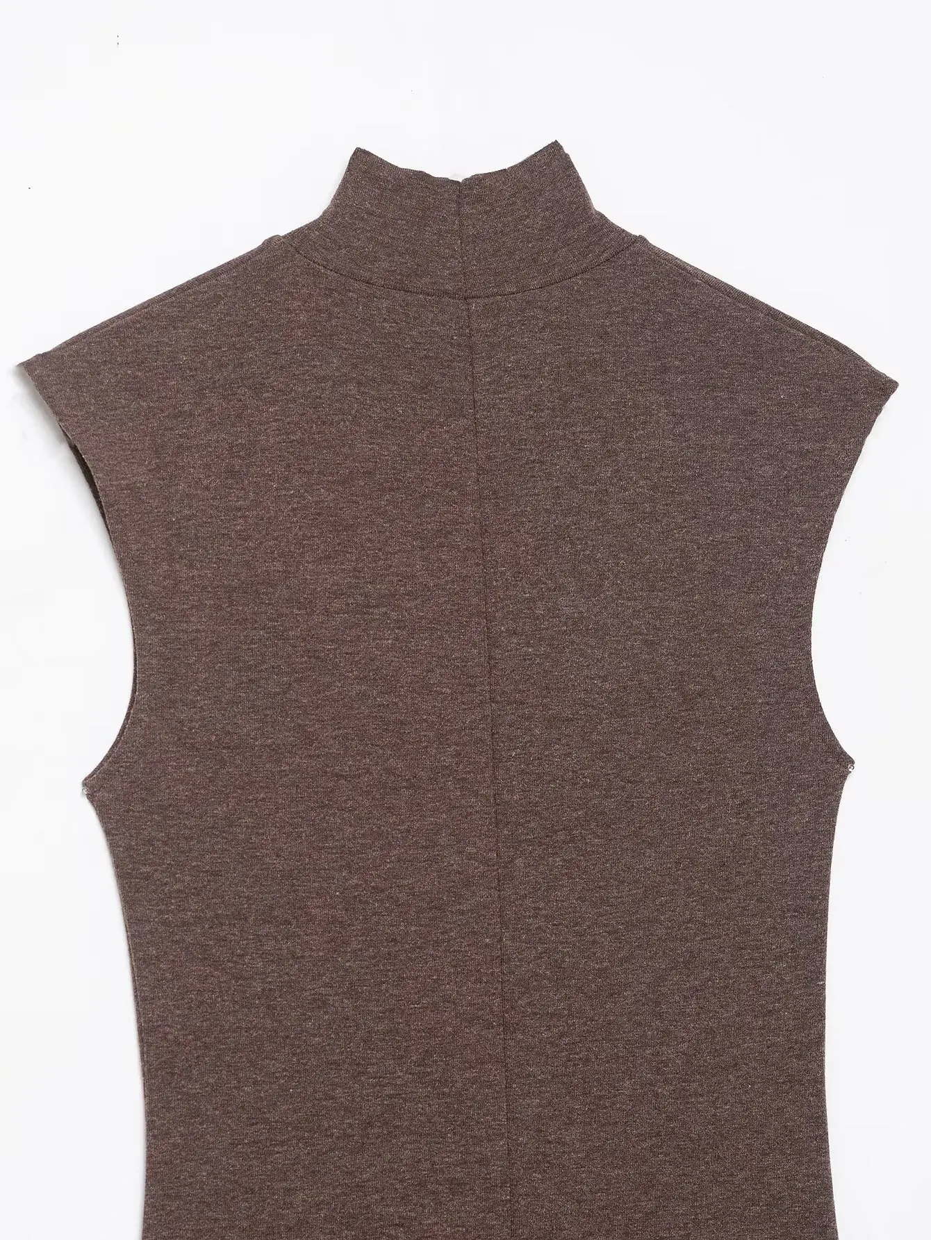 Chic Mock Neck & Sleeveless Design: Featuring a sophisticated mock neck and sleeveless cut, this dress brings a stylish and elegant touch to your ensemble while providing a fit that highlights your shoulders and neckline beautifully.