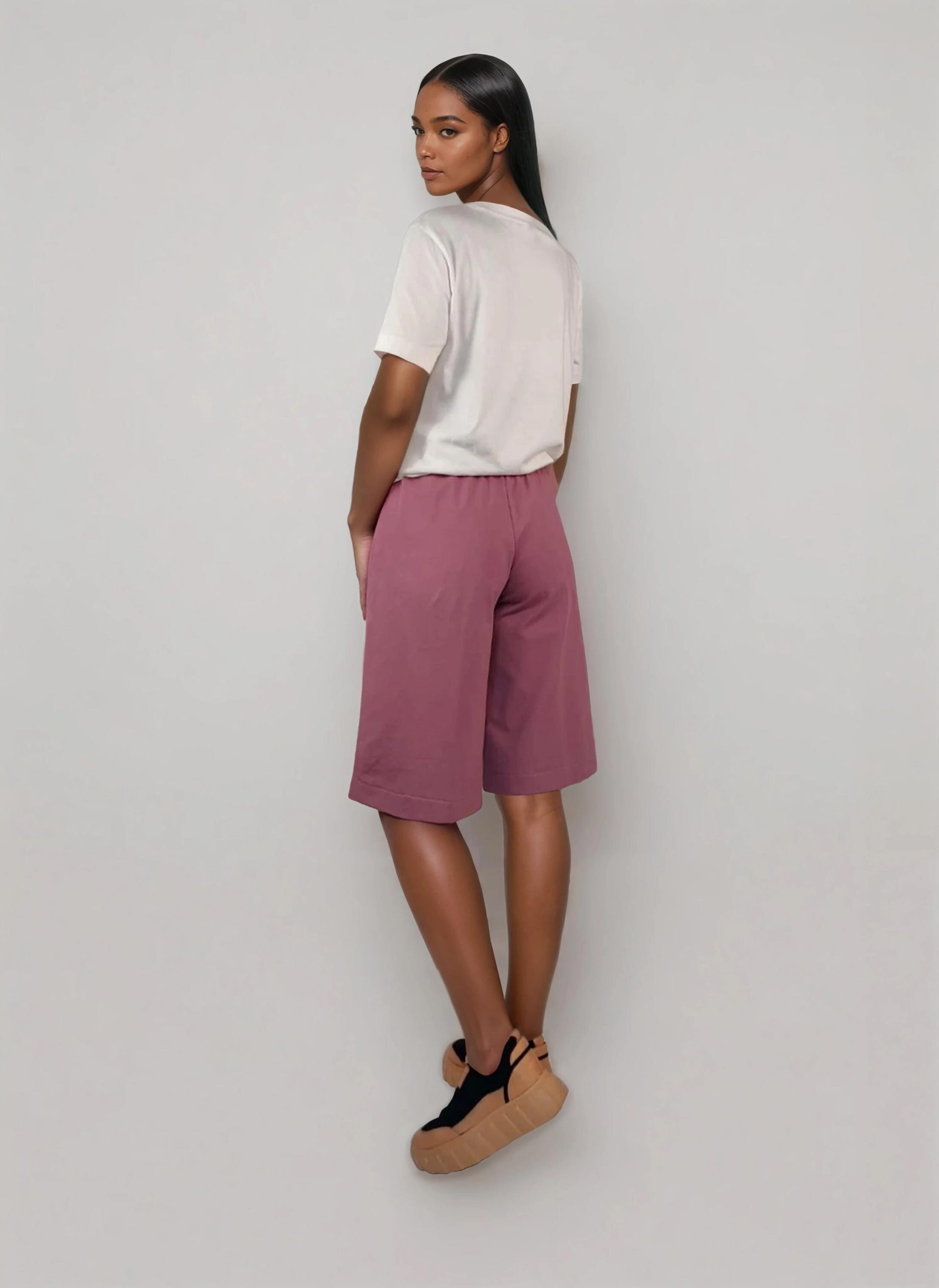 Designed in a flowy wide-leg culotte style, this piece offers a generous, unrestricted fit that moves with you—perfect for all-day ease without sacrificing a trendy, modern shape.