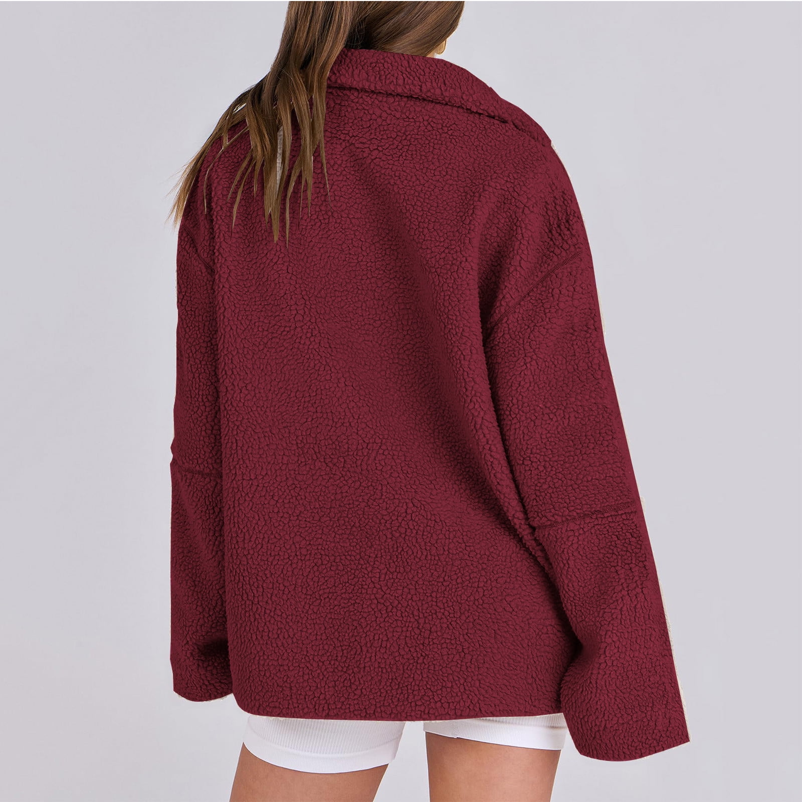 This women’s fuzzy oversized jacket is a versatile must-have for any closet. Made from ultra-soft polyester fabric, it offers cozy warmth for transitional seasons and easy layering. Its stand-up collar, full-zip closure, and roomy patch pockets blend practicality with trendy design, while the relaxed oversized fit ensures all-day ease. Perfect for daily wear, casual outings, or relaxed looks, it pairs seamlessly with shorts, jeans, or pants — accessorize with bags or jewelry to suit any occasion. Stay comfortable, stylish, and adaptable with this essential jacket.