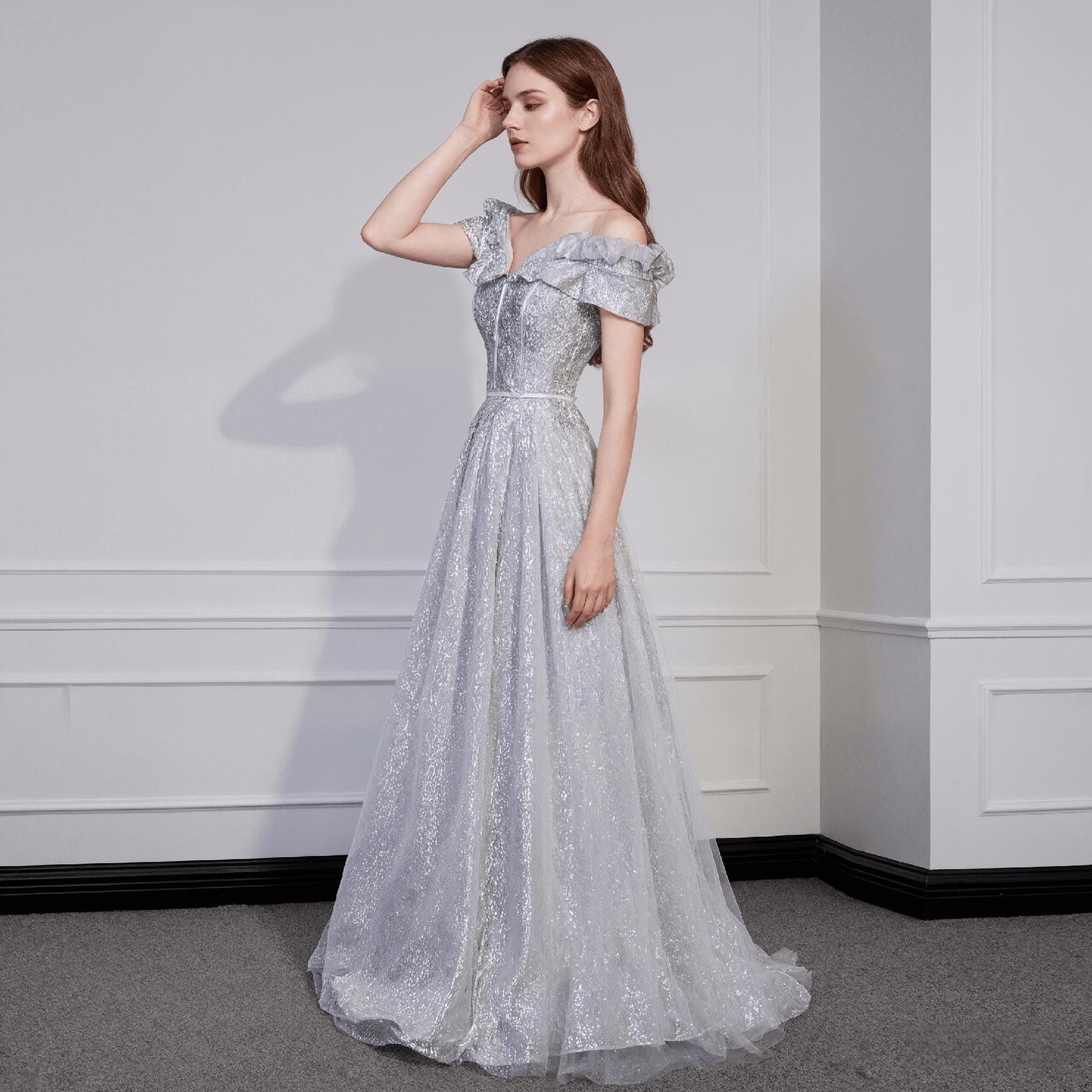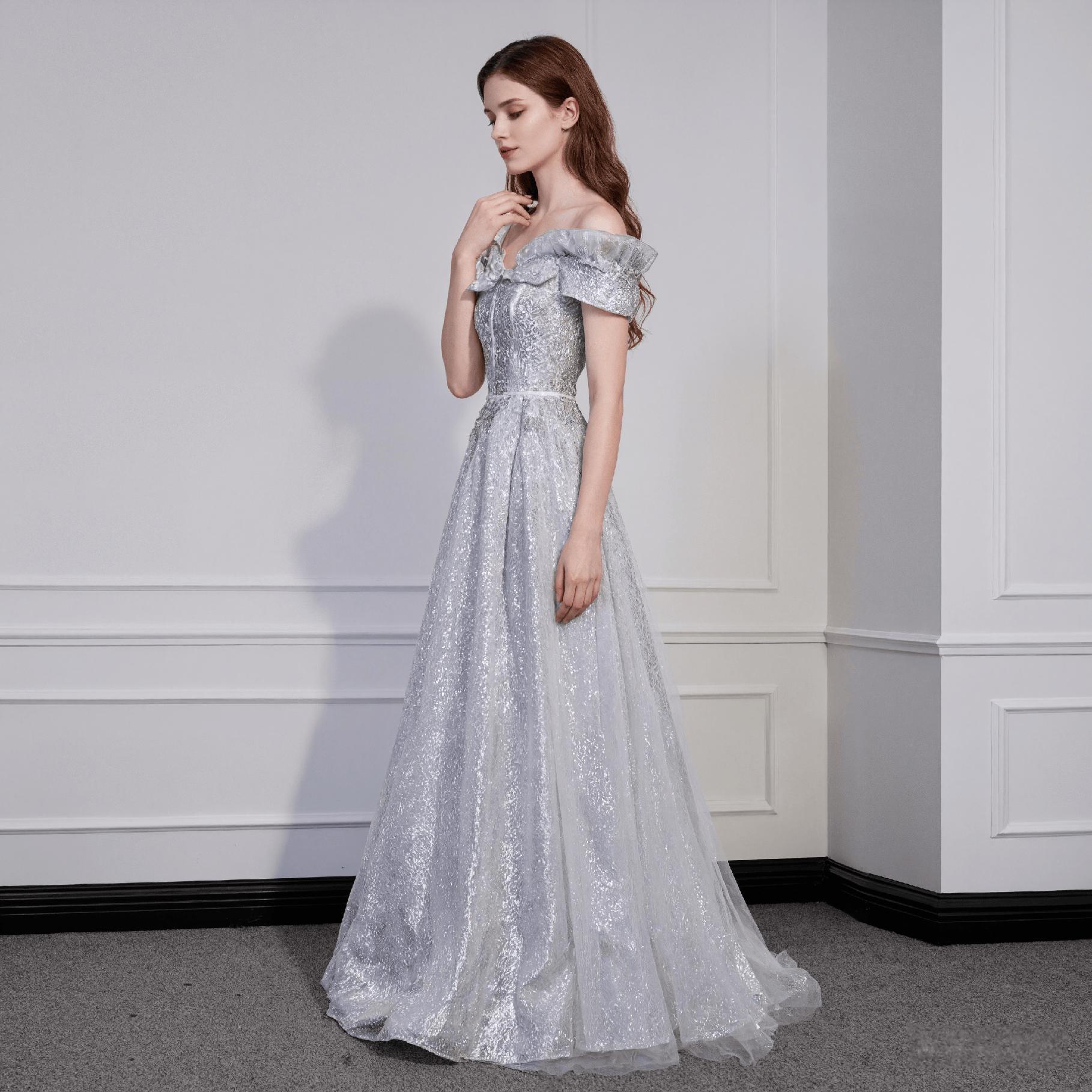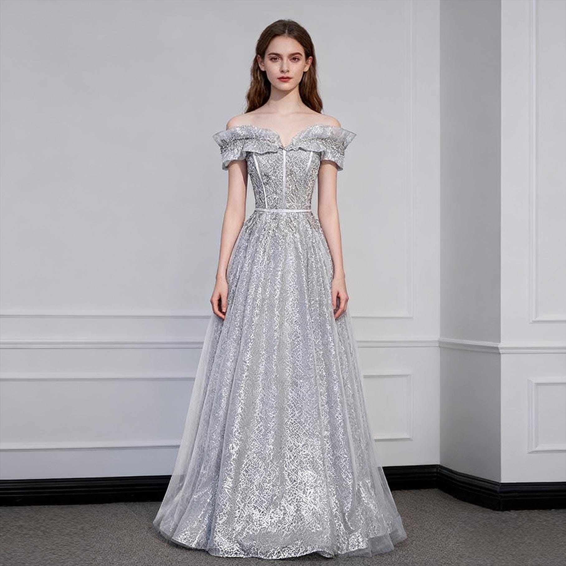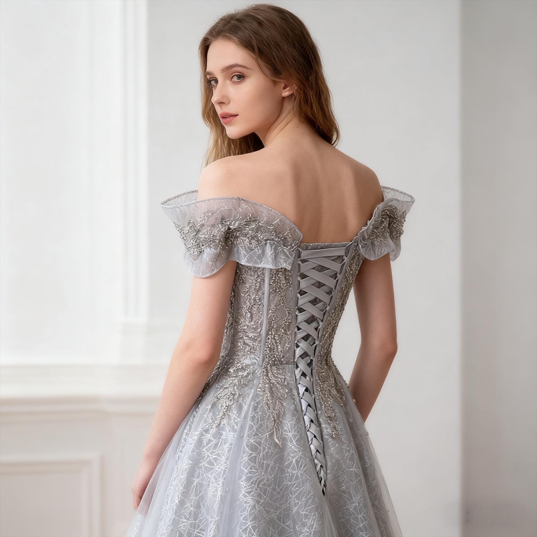 Fairy Gray Off Shoulder Prom Dress, Elegant Long Gown, Tulle Prom Dress, Evening Dress, Party Dress, Prom Dress, Birthday Dress, Ball Gown