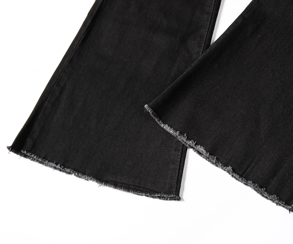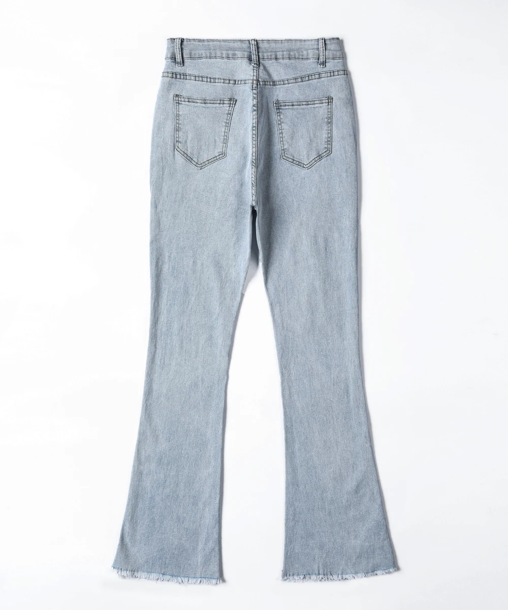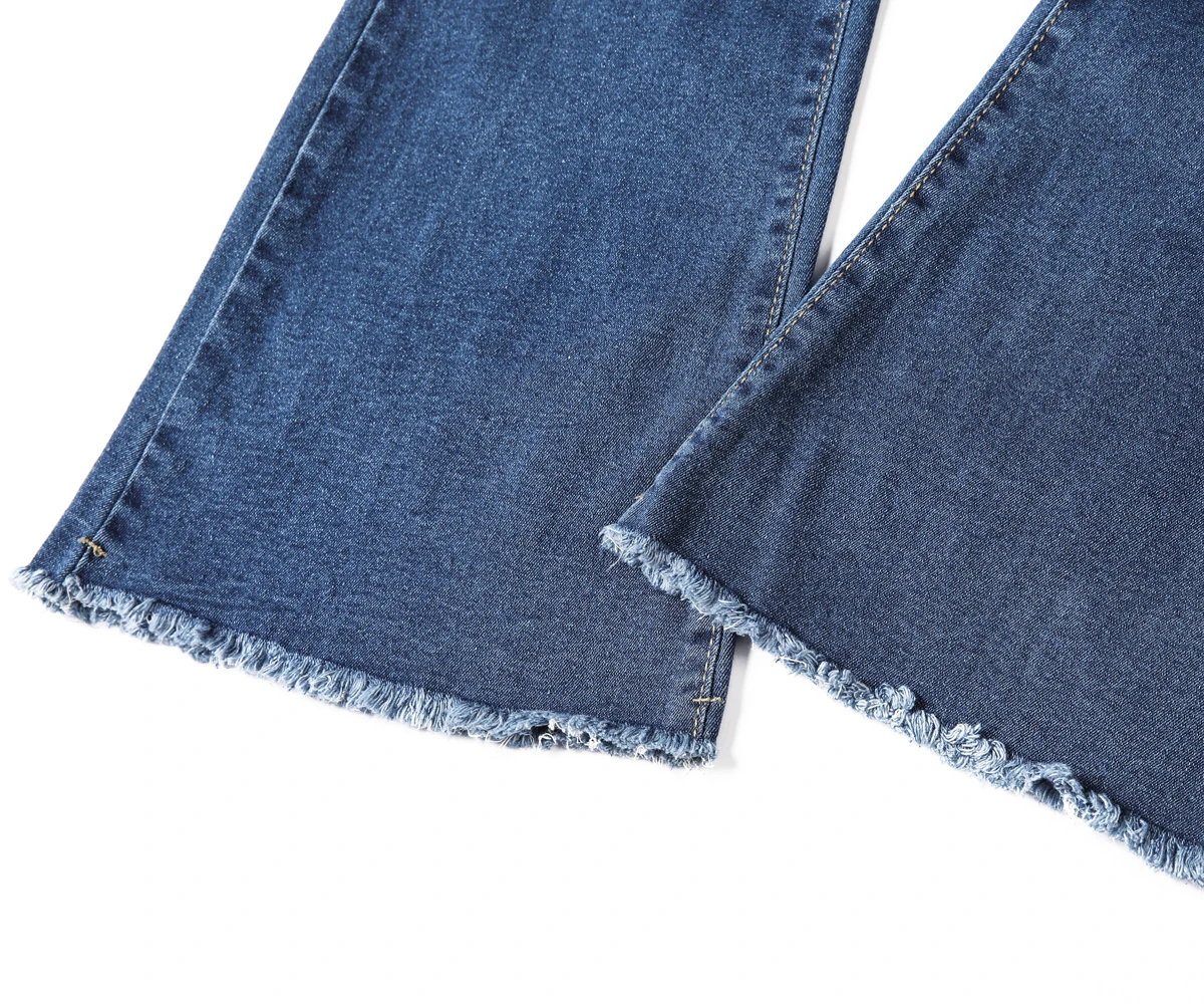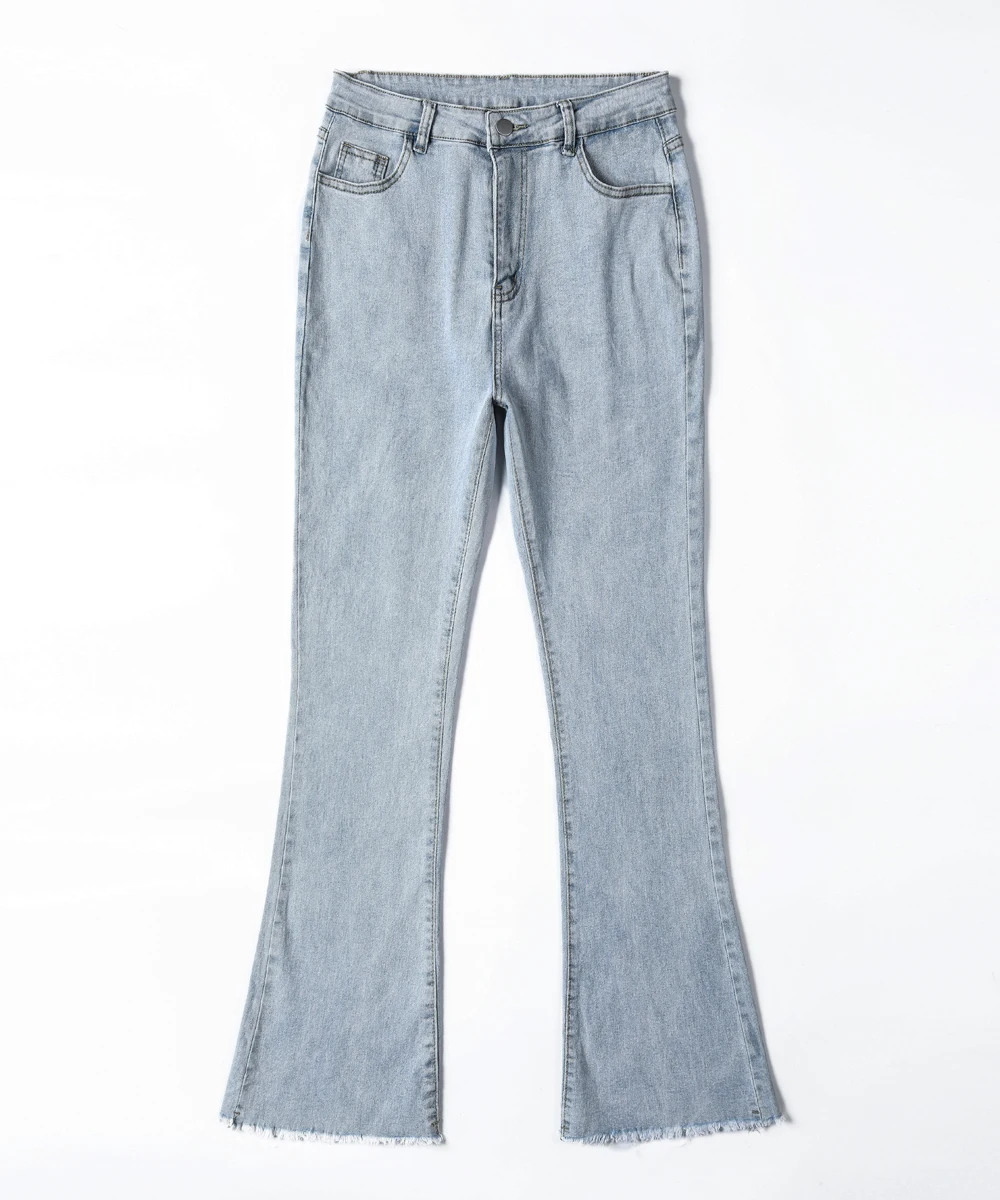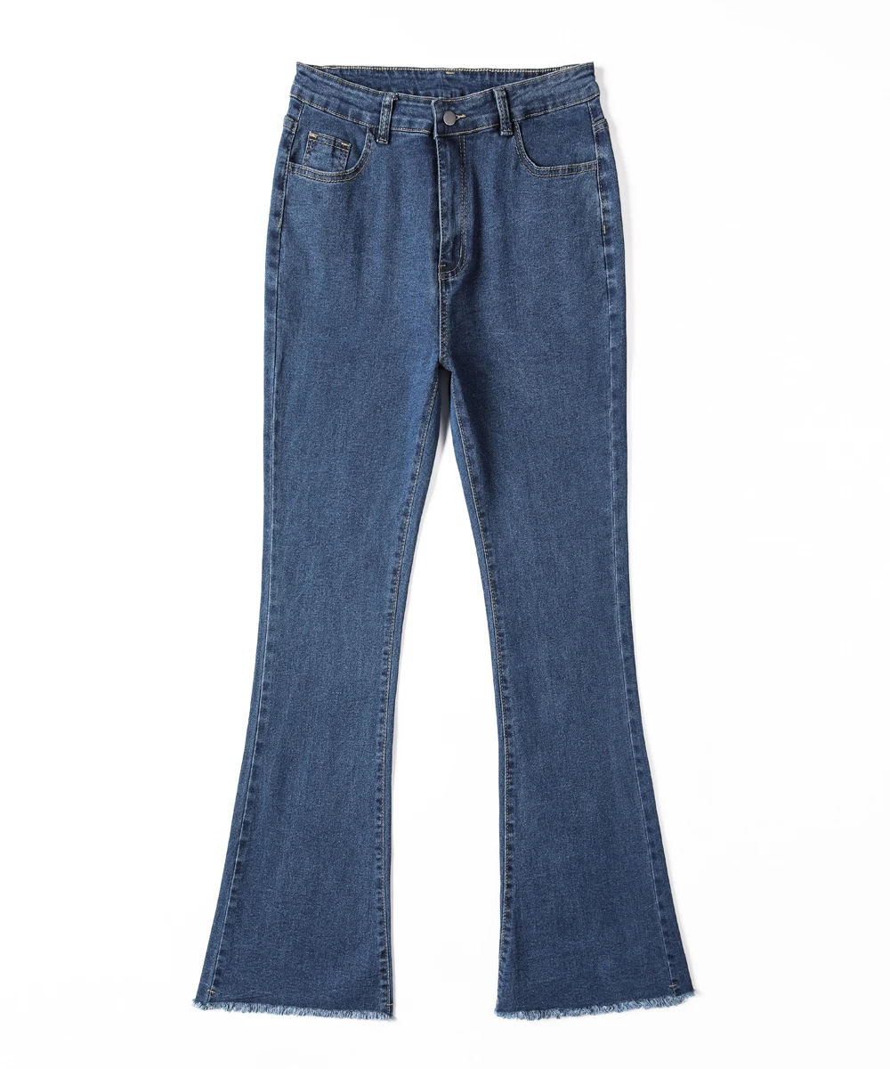 These women’s flared denim jeans are a versatile addition to your wardrobe. Made of premium denim fabric, they offer both softness and a retro-inspired silhouette for multi-season wear. The high-waist and flared design add a stylish element, while the raw hem ensures a trendy look. Suitable for daily wear, casual outings, or semi-formal events, pair them with a crop top, blouse, or accessories for a chic look that adapts to various occasions. Stay stylish and comfortable with this trendy jeans style.