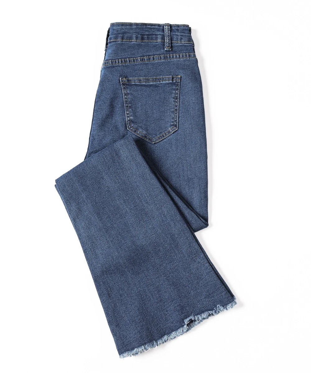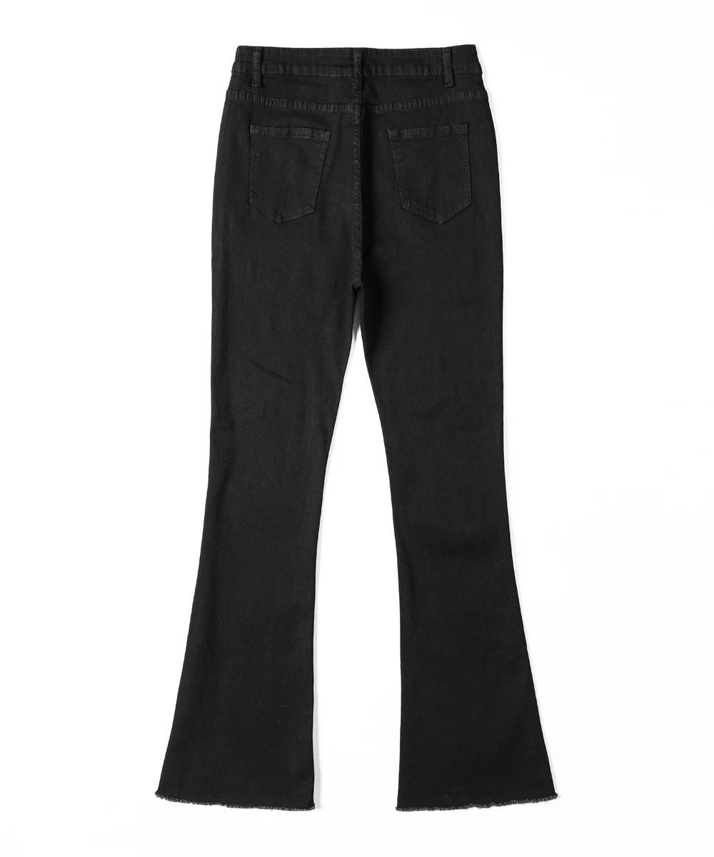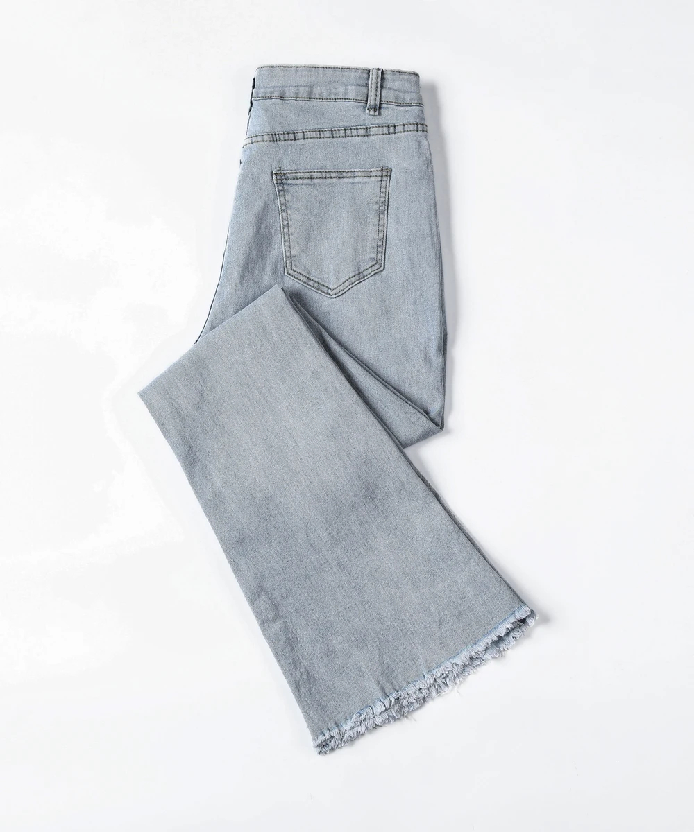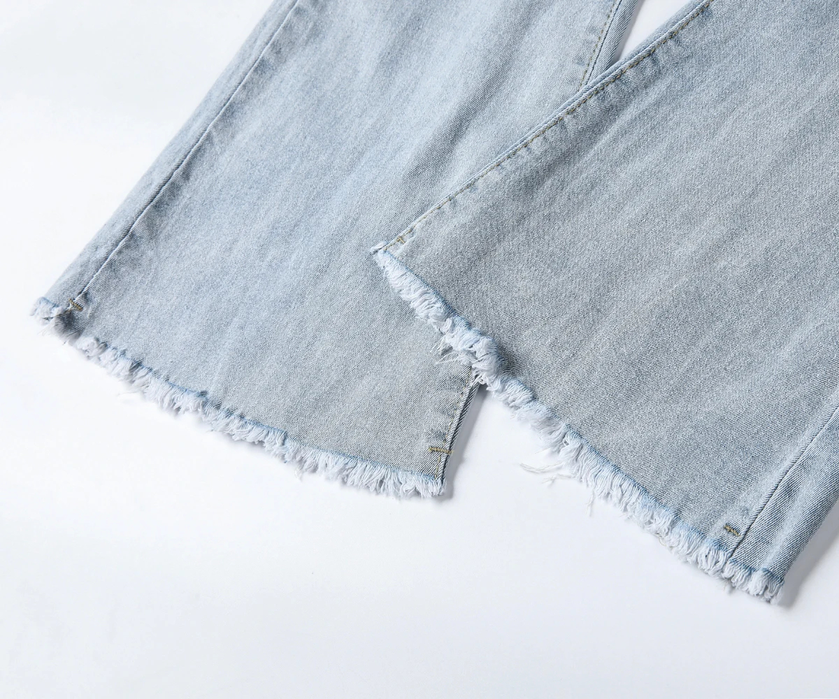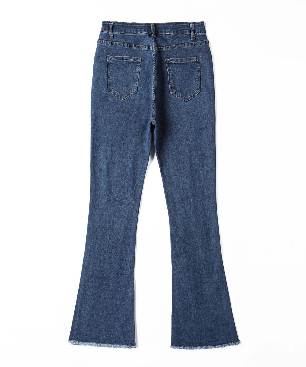 These women’s flared denim jeans are a versatile addition to your wardrobe. Made of premium denim fabric, they offer both softness and a retro-inspired silhouette for multi-season wear. The high-waist and flared design add a stylish element, while the raw hem ensures a trendy look. Suitable for daily wear, casual outings, or semi-formal events, pair them with a crop top, blouse, or accessories for a chic look that adapts to various occasions. Stay stylish and comfortable with this trendy jeans style.